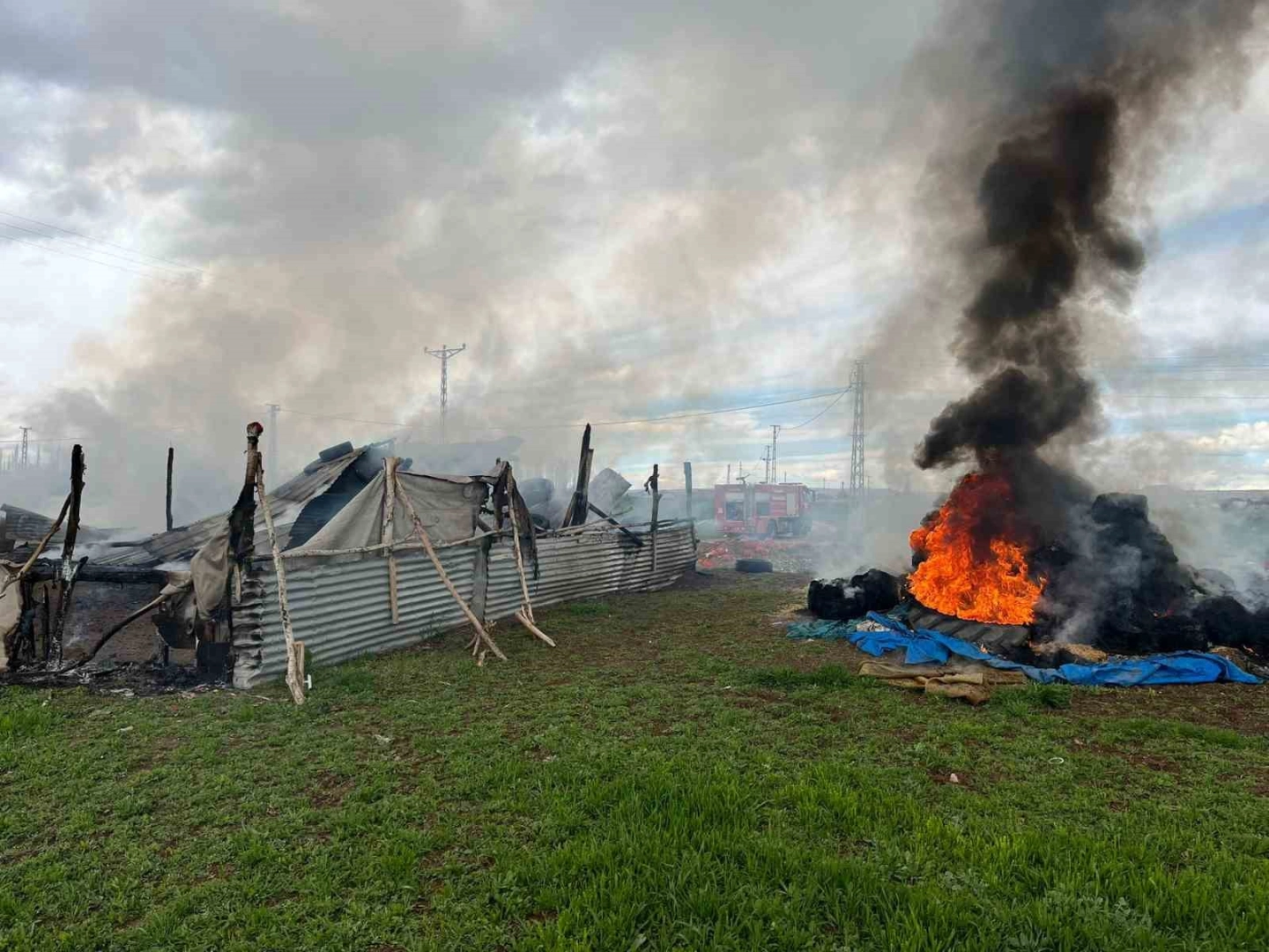 Yangında can kaybı ya da yaralanan olmazken, 150 saman balyası ile 150 metrekarelik ağıl kullanılamaz hale geldi.