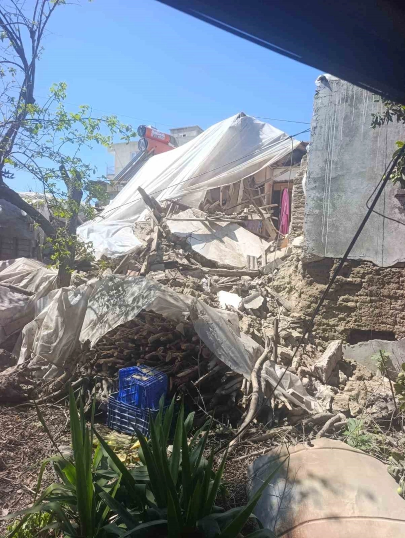 Antalya’nın Demre ilçesinde kullanılmayan 2 katlı kerpiç ev çöktü.