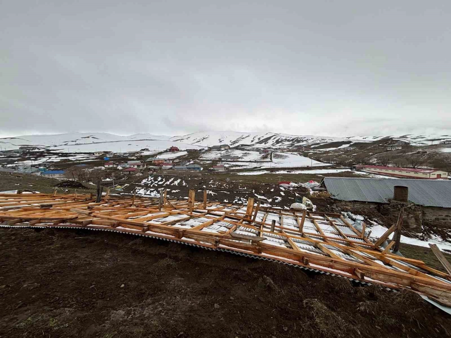 Ardahan’da şiddetli rüzgarın etkisiyle 3 binanın çatısı uçtu.