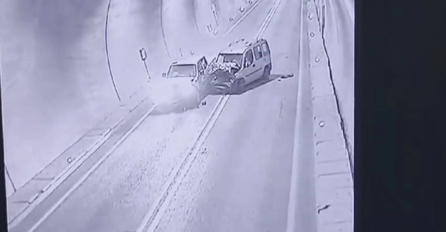 kilometresindeki tünelde, iki kamyonetin çarpışması sonucu 7 kişinin yaralandığı kazanın güvenlik kamerası görüntüleri ortaya çıktı.