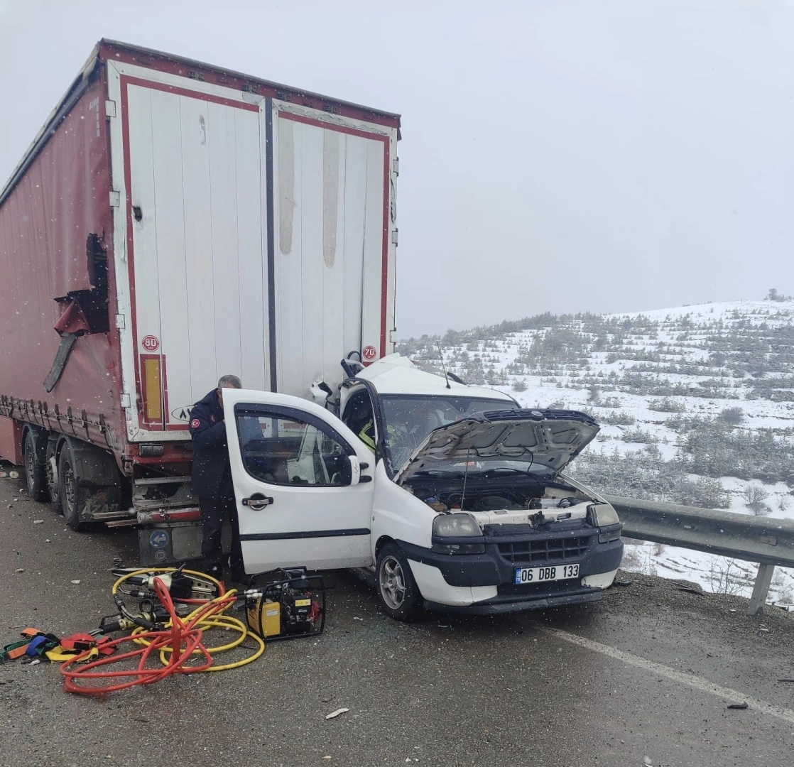 Edinilen bilgilere göre aynı güzergâhta seyir halinde olan hafif ticari araç, önünde ilerleyen tıra arkadan çarptı. Çarpmanın etkisiyle savrulan araç, tırın altına girerken, tırın otomobili bir süre sürüklediği öğrenildi. Kazanın şiddetiyle aracın arka kısmı büyük hasar aldı.