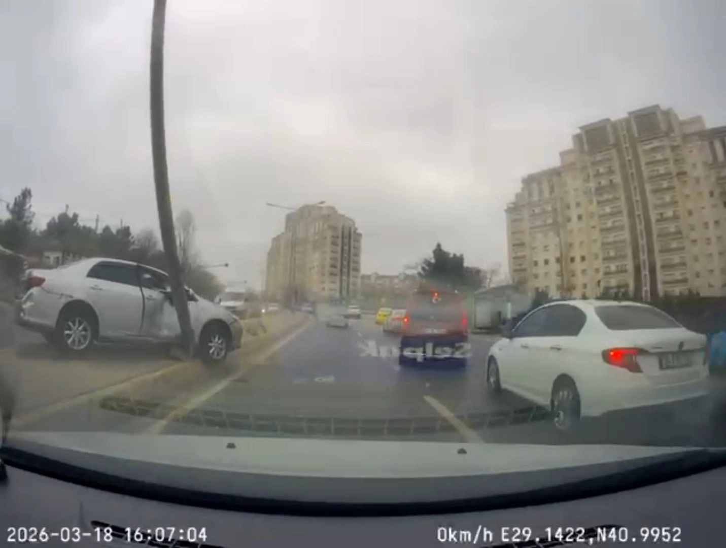 ? İstanbul Ataşehir Kayışdağı Caddesi üzerinde saat 16.00 sıralarında meydana gelen kazada, seyir halindeki otomobil, sürücüsünün direksiyon hakimiyetini kaybetmesi sonucu kontrolden çıktı. Savrulan araç yol ortasındaki refüje çıkarak çarptığı elektrik direğini devirdi. Yerinden sökülen direk yola devrildi. O sırada ters yönde ilerleyen bir başka sürücü, devrilen direği son anda fark ederek manevra yaptı ve facianın eşiğinden dönüldü. Korku dolu o anlar, direğin altında kalmaktan son anda kurtulan aracın kamerası tarafından saniye saniye kaydedildi.