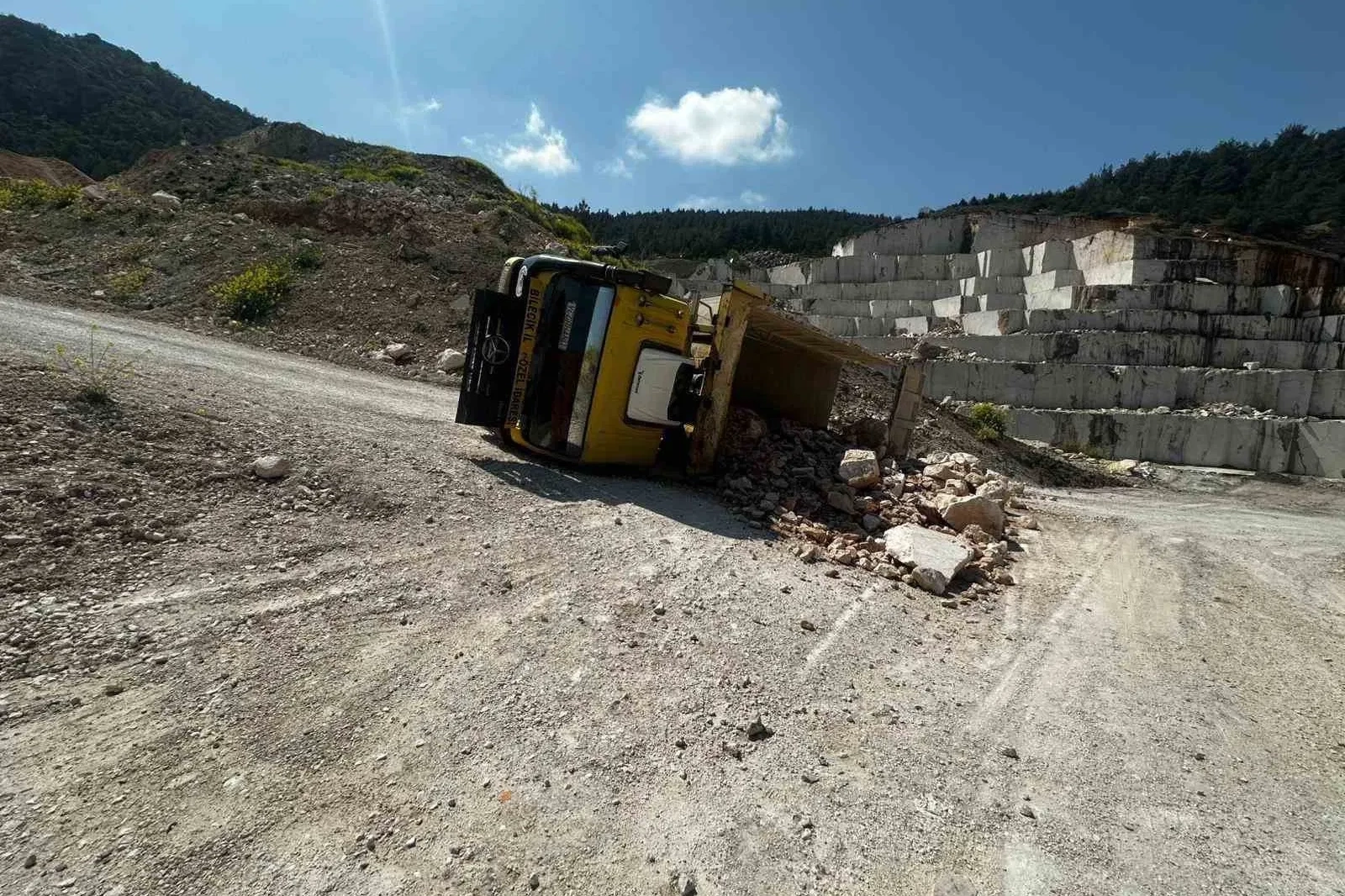 Bilecik’te taş yüklü kamyonun devrilmesi sonucu meydana gelen trafik kazasında 2 kişi yaralandı. Kaza, Bilecik’e bağlı Gülümbe köyü sınırları içerisinde faaliyet gösteren Bilecik İl Özel İdaresi Mermer Ocağı sahasında meydana geldi. Edinilen bilgilere göre, Enes D. idaresindeki 11 EL 624 plakalı taş yüklü kamyon, geri manevra yaptığı sırada sürücünün bir anlık dikkatsizliği sonucu kontrolden çıkarak devrildi. Kazada sürücü ile araçta bulunan işçi Sedat E. yaralandı. Yaralılar olay yerine gelen acil servis ekiplerince yapılan ilk müdahalenin ardından Bilecik Eğitim ve Araştırma Hastanesi’ne kaldırılarak tedavi altına alındı. Jandarma ekipleri olayla ilgili inceleme başlattı.