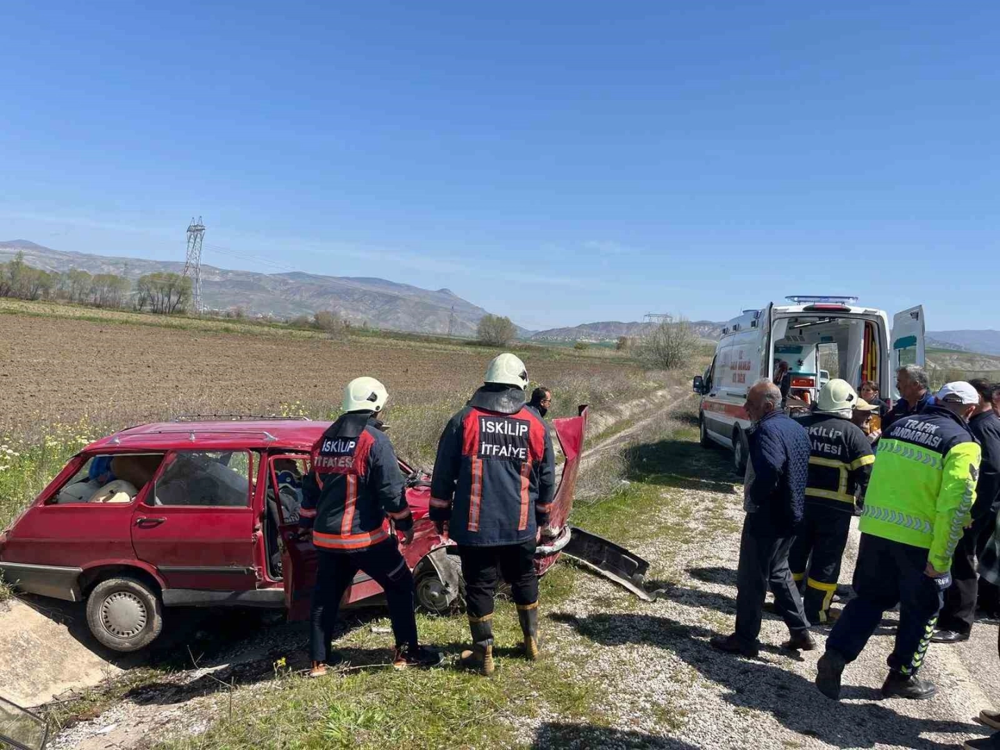 Kazayı gören vatandaşlar durumu 112 Acil Çağrı Merkezine bildirdi. İhbar üzerine olay yerine sağlık, jandarma, ve İskilip Belediyesi itfaiye ekipleri sevk edildi. Olay yerine gelen itfaiye ekiplerinin çalışmasıyla Mehmet Y. ile Bilal D. araçtan çıkartıldı. Sağlık ekipleri tarafından ilk müdahaleleri yapılan yaralılar, hastaneye kaldırıldı.