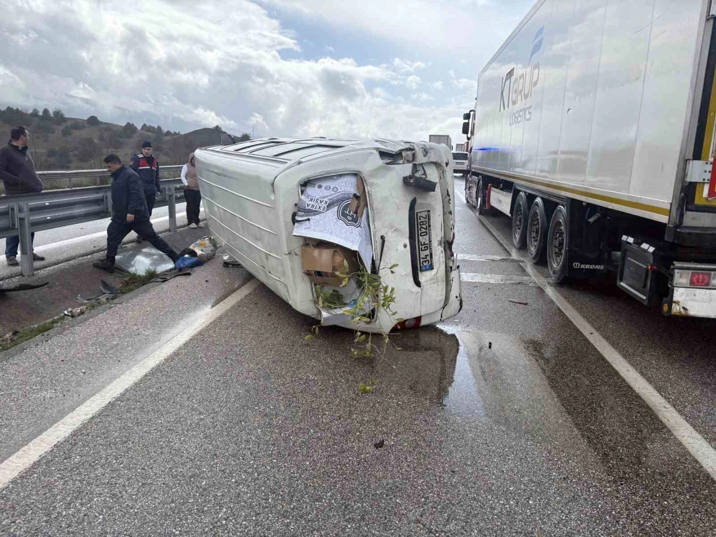 D100’de minibüs devrildi: 1 yaralı