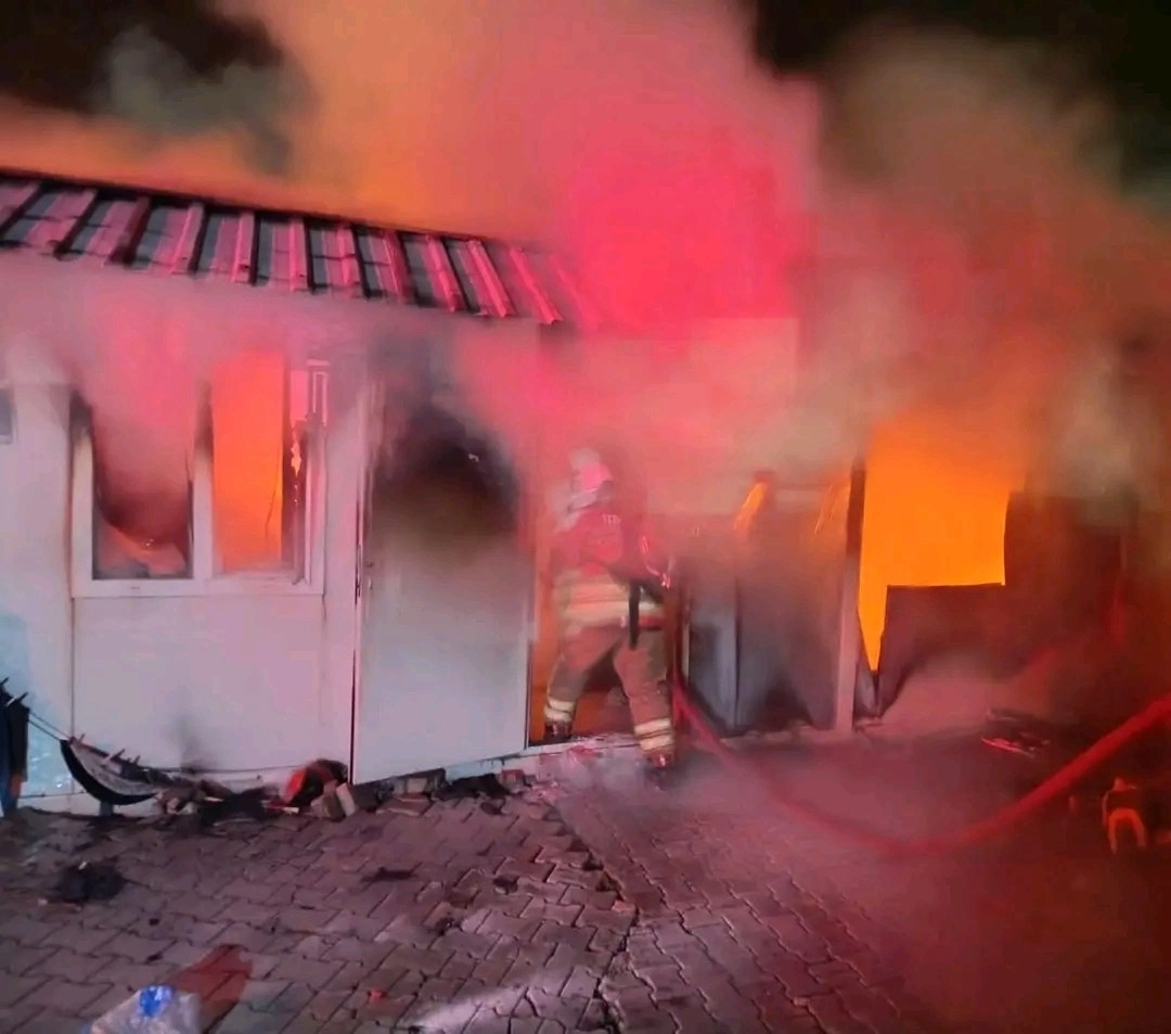 Yaralanma ve can kaybı yaşanmayan yangında depremzede vatandaşlar korku dolu anlar yaşadı.