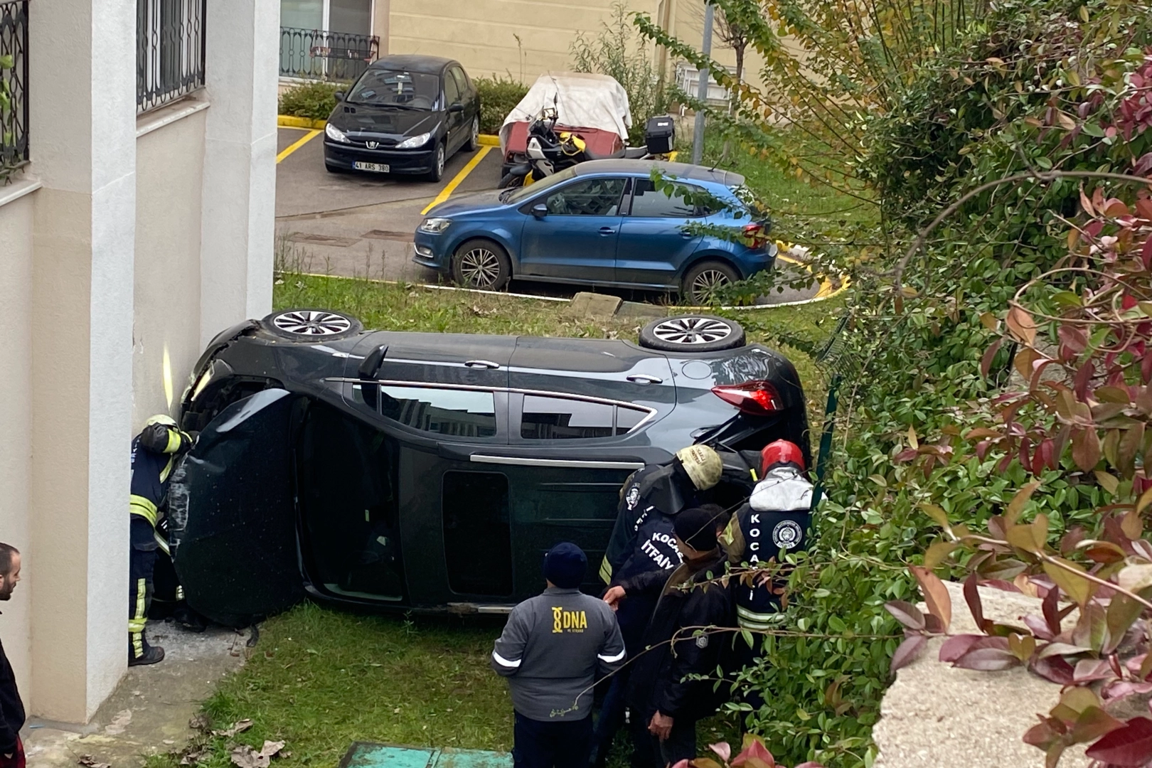 Çınarlı Mahallesi Kelebek Sokak'ta sürücüsünün ismi henüz öğrenilemeyen 41 GP 704 plakalı otomobil, geri manevra yaptığı sırada kontrolden çıktı. Yaklaşık 4 metre yükseklikteki istinat duvarından binanın bahçesine düşen araçtaki sürücü ile kızı yaralandı. Çevredekilerin yardımıyla araçtan çıkarılan yaralılar, ihbar üzerine olay yerine gelen sağlık ekiplerince Kocaeli Şehir Hastanesi'ne kaldırıldı.