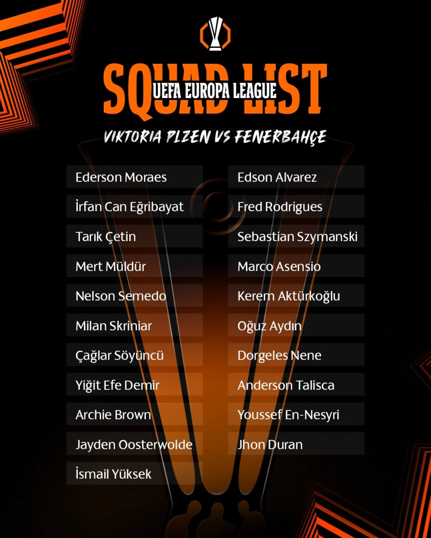 haftasında yarın deplasmanda Çekya ekibi Viktoria Plzen ile oynayacağı maçın kamp kadrosu belli oldu.