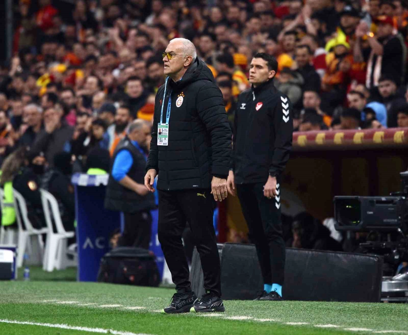 Galatasaray’da Teknik Direktör Okan Buruk cezasından dolayı saha kenarında yer almadı. Buruk’un yerine takımın başında yardımcı antrenör İrfan Saraloğlu çıktı. Buruk ise tribünden karşılaşmayı takip etti.