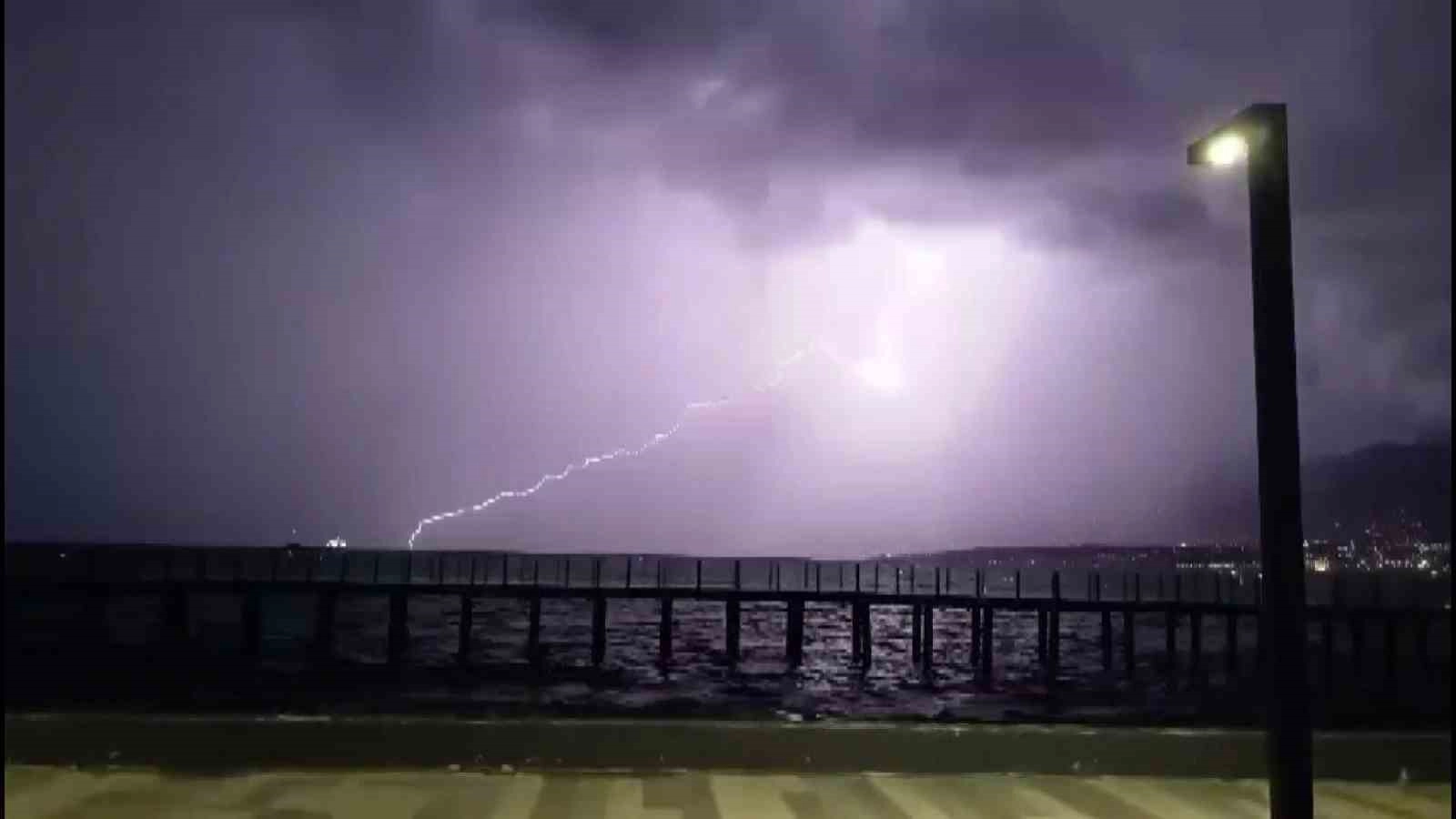 Hatay’ın kıyı ilçelerinde gece saatlerinde yıldırımla birlikte etkili olan şiddetli yağış hayatı olumsuz etkiledi.
