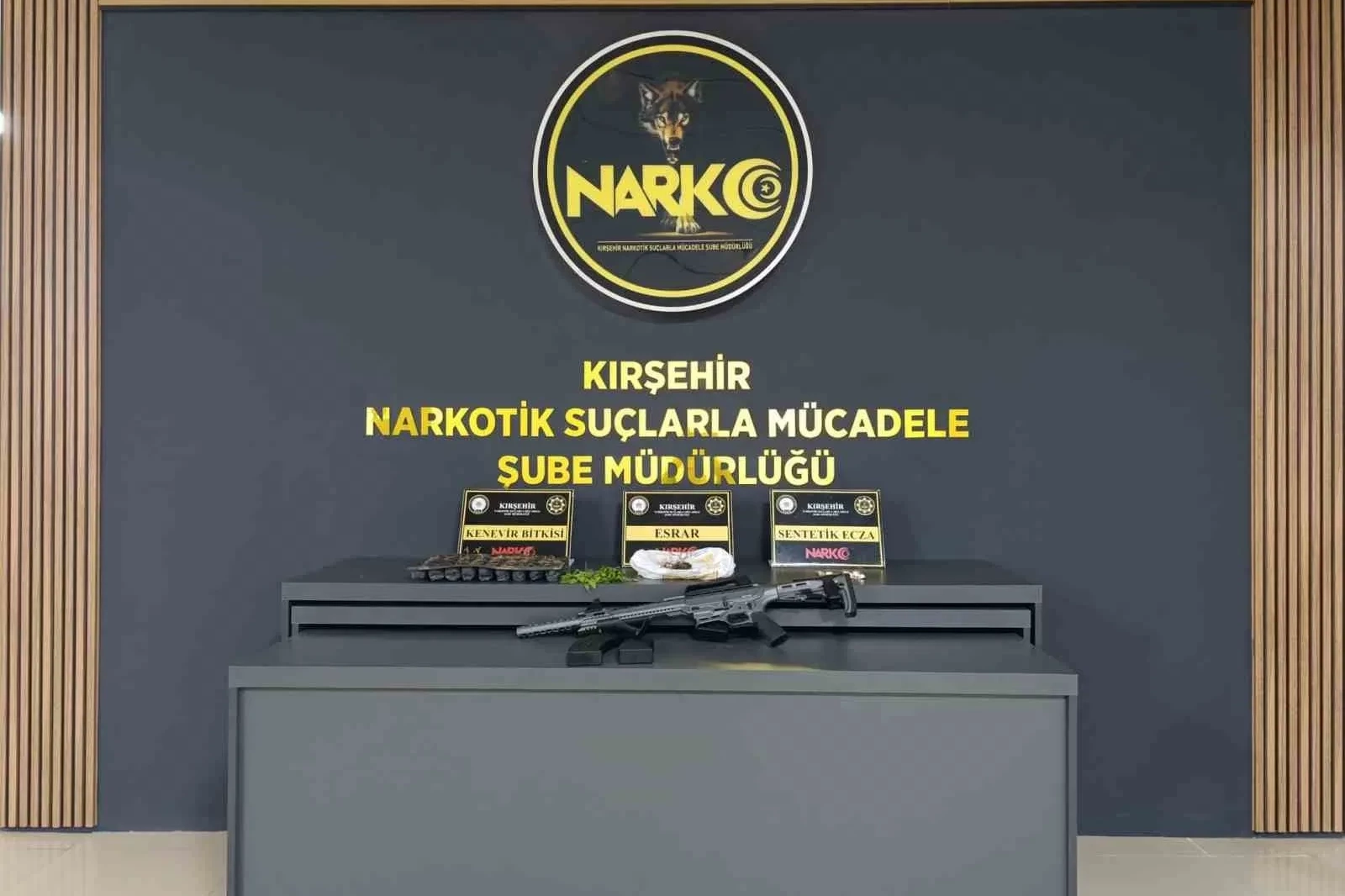 KIRŞEHİR (İHA) – Kırşehir’de polis ekipleri tarafından bir eve düzenlenen operasyonda uyuşturucu madde ve ruhsatsız silah ele geçirildi. Edinilen bilgiye göre İl Emniyet Müdürlüğü ekipleri; şehir merkezinde yaşayan D.M.’nin evine operasyon düzenlendi. Evde yapılan aramada 5–20 santimetre boylarında 36 kök hint keneviri, 7,30 gram uyuşturucu madde, 15 sentetik hap, 1 ruhsatsız av tüfeği ile 2 şarjör ele geçirildi. Olayla ilgili olarak D.M. hakkında ’Uyuşturucu veya Uyarıcı Madde Ticareti Yapmak’ suçlarından adli işlem başlatıldı. Emniyetteki işlemlerinin ardından adliyeye sevk edilen şüpheli, çıkarıldığı mahkemece tutuklanarak ceza infaz kurumuna teslim edildi.