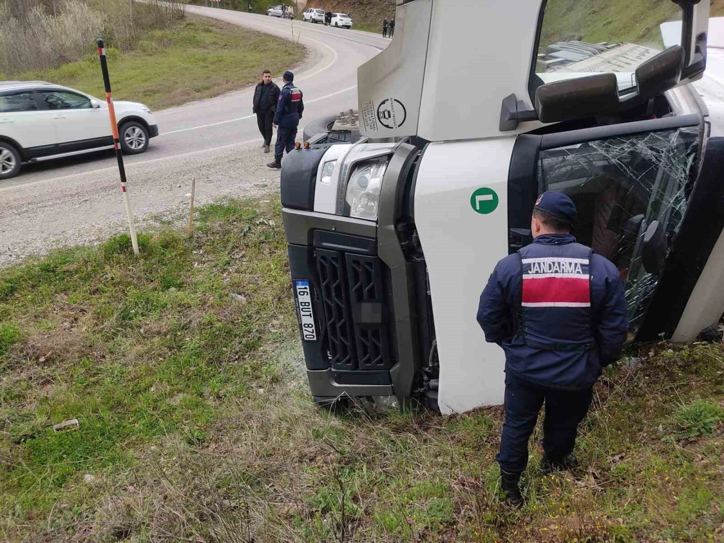 Kaza, saat 16.00 sıralarında İnegöl-Domaniç kara yolu İnegöl’ün Tahtaköprü Mahallesi mevkiinde meydana geldi. Domaniç istikametinden İnegöl’e seyir halinde olan Murat B.(39) yönetimindeki 16 BUT 870 plakalı su yüklü tır, yokuş aşağı inerken frenlerinin patlaması sonucu sürücüsünün kontrolünden çıktı. Yoldan çıkan tır yamaca devrildi. Kaza yerine 112, jandarma ve itfaiye arama kurtarma ekipleri sevk edildi. Kaza sonucu yaralanan sürücü, tırın camı kırılarak ekiplerce kurtarıldı. Yaralı olay yerine sevk edilen ambulansla İnegöl Devlet Hastanesine kaldırıldı.
