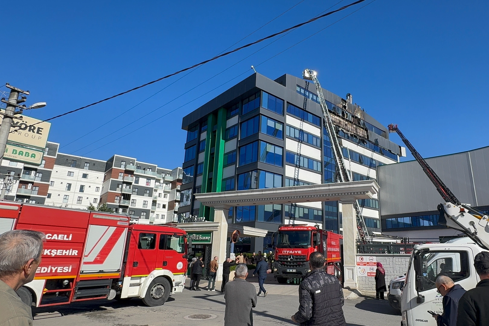 Gebze ilçesi İnönü Mahallesi 1964. Sokak’ta 7 katlı iş merkezinin dış cephesinde yangın çıktı. Henüz bilinmeyen sebeple başlayan yangın, iş merkezinin yedinci katındaki dış cephe kaplamasına sıçradı ve çatıya ulaştı. Vatandaşlar durumu 112 Acil Çağrı Merkezi’ne bildirdi. Olay yerine itfaiye, sağlık ve polis ekipleri sevk edildi. Ekiplerin hızlı müdahalesiyle yangın büyümeden söndürüldü. Olayla ilgili inceleme başlatıldı.