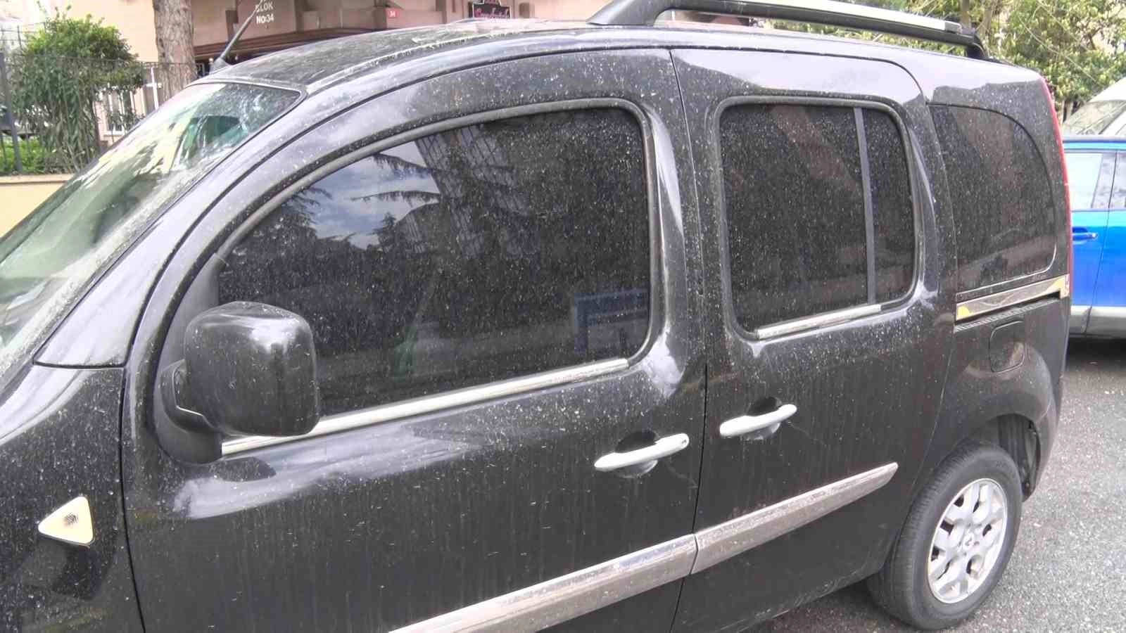 İstanbul’da sabahın ilk saatlerinde etkisini gösteren çamur yağmuru, araçların üzerini adeta çamurla kapladı.