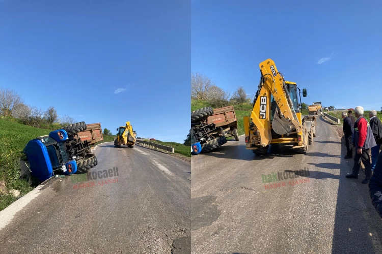 Son olarak İzmit yönüne seyir halinde olan, Ulupınar köyünden Nedim Akbulut yönetimindeki traktör, kayganlaşan yolda kontrolden çıkarak sağ tarafa yan yattı. Kazada yaralanan olmazken, olay yerine sağlık ve jandarma ekipleri sevk edildi.
