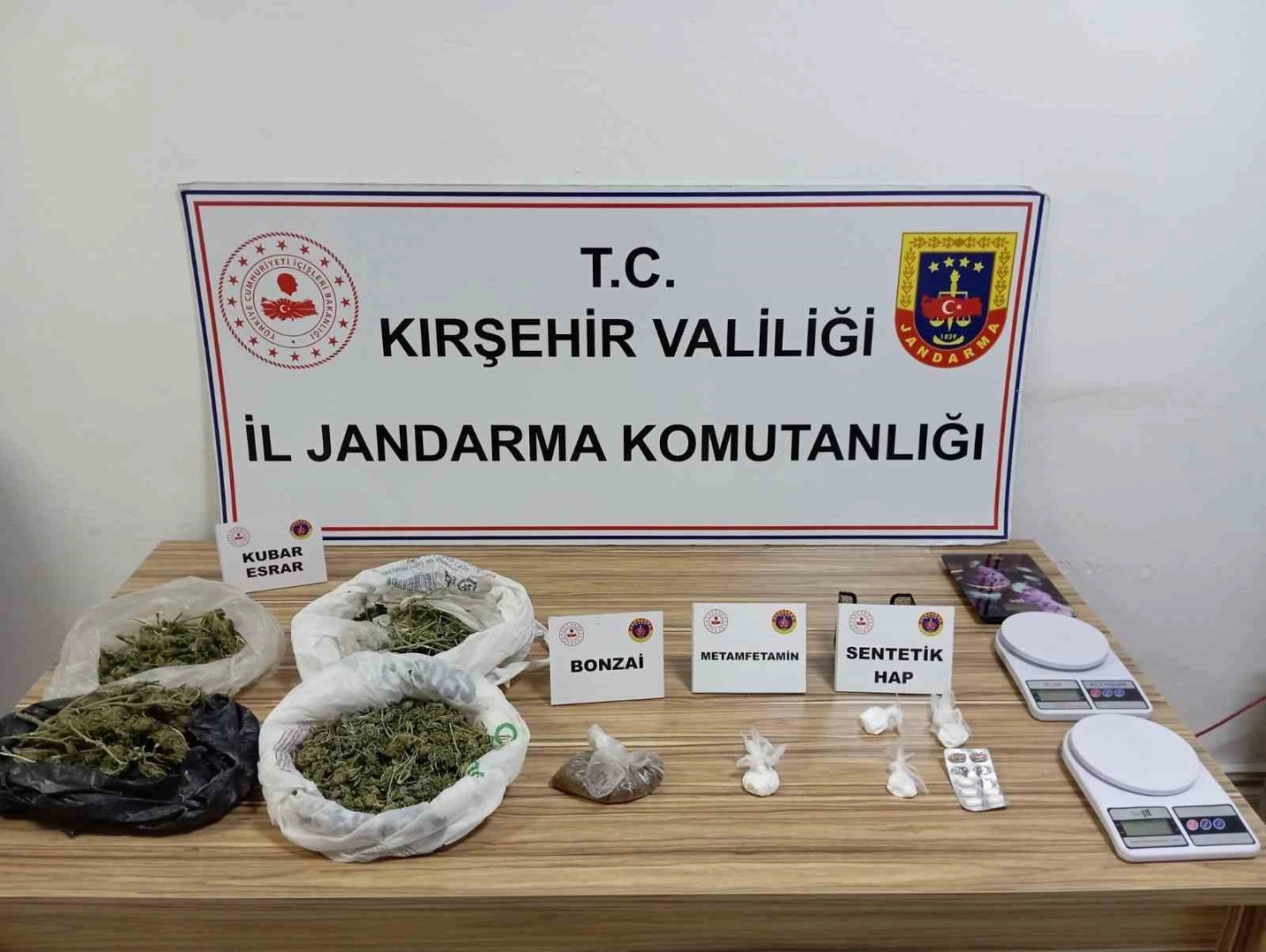 Edinilen bilgiye göre, Kırşehir İl Jandarma Komutanlığı KOM Şube ekipleri, uyuşturucu madde bulundurduğu iddia edilen M.T.’yi takibe aldı. Yapılan çalışmalar ve fiziki takip sonucunda M.T. yakalanarak gözaltına alındı. Şüphelinin üzerinde ve eşyalarında yapılan aramada bin 200 gram uyuşturucu ot, 44 gram uyarıcı madde, 28 gram sentetik hap ile 3 adet hassas terazi ele geçirildi.