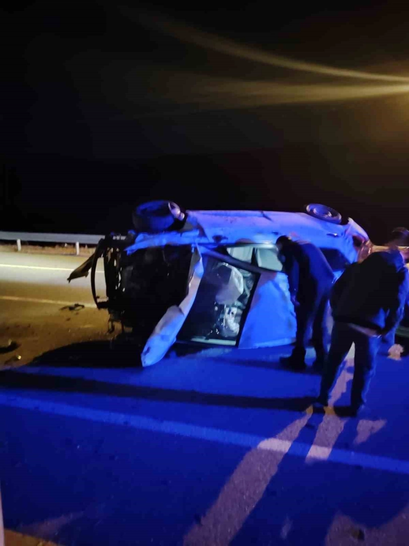 Kayseri’nin Bünyan ilçesinde kontrolden çıkan otomobil yan yattı.