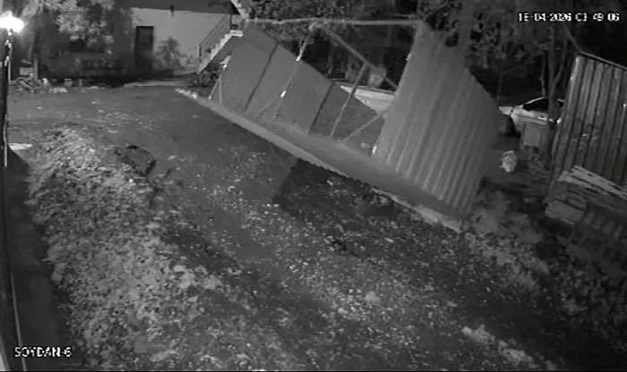 Hatay’da fırtınanın evin bahçesinde bulunan tavuk kümesini uçurduğu anlar güvenlik kamerasına yansıdı.