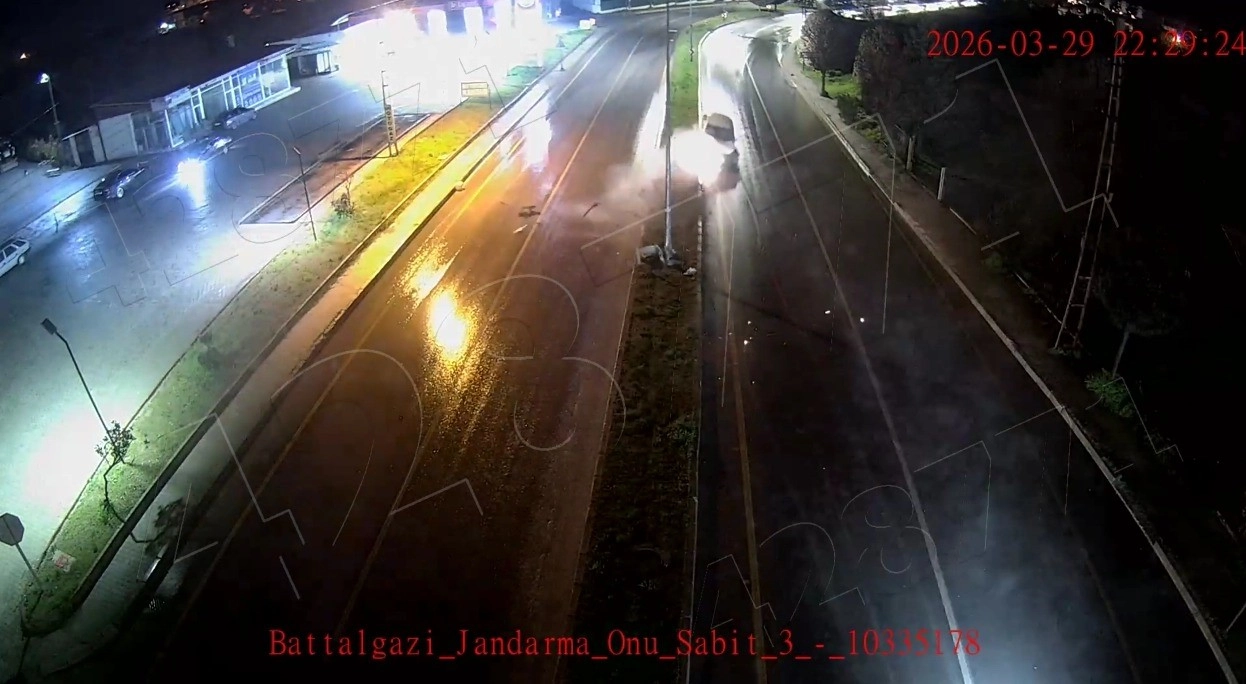 Kaza, 29 Mart Pazar günü saat 22.30 sıralarında Battalgazi İlçe Jandarma Komutanlığı mevkiinde meydana geldi. İlçe merkezi istikametine seyir halinde olan otomobil, sürücüsünün kontrolünden çıkarak önce orta refüje ardından aydınlatma direğine çarptı. Çarpmanın etkisiyle savrulan araçta yaşanan kaza anı Kent Güvenlik Yönetim Sistemi (KGYS) kameralarınca saniye saniye kaydedildi.