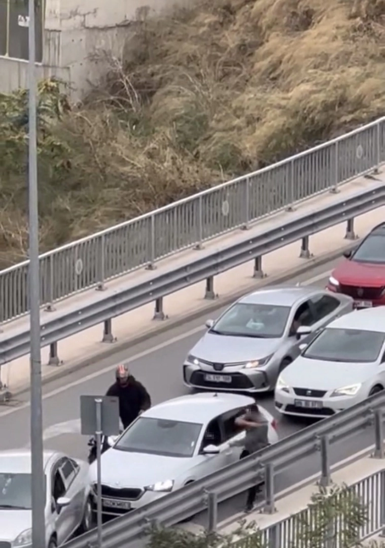 Sürücülerden biri eline aldığı sopayla diğer sürücüye saldırdı. Kavga çevredeki vatandaşların araya girmesiyle son bulurken, yaşananlar cep telefonu kamerasına saniye saniye yansıdı.