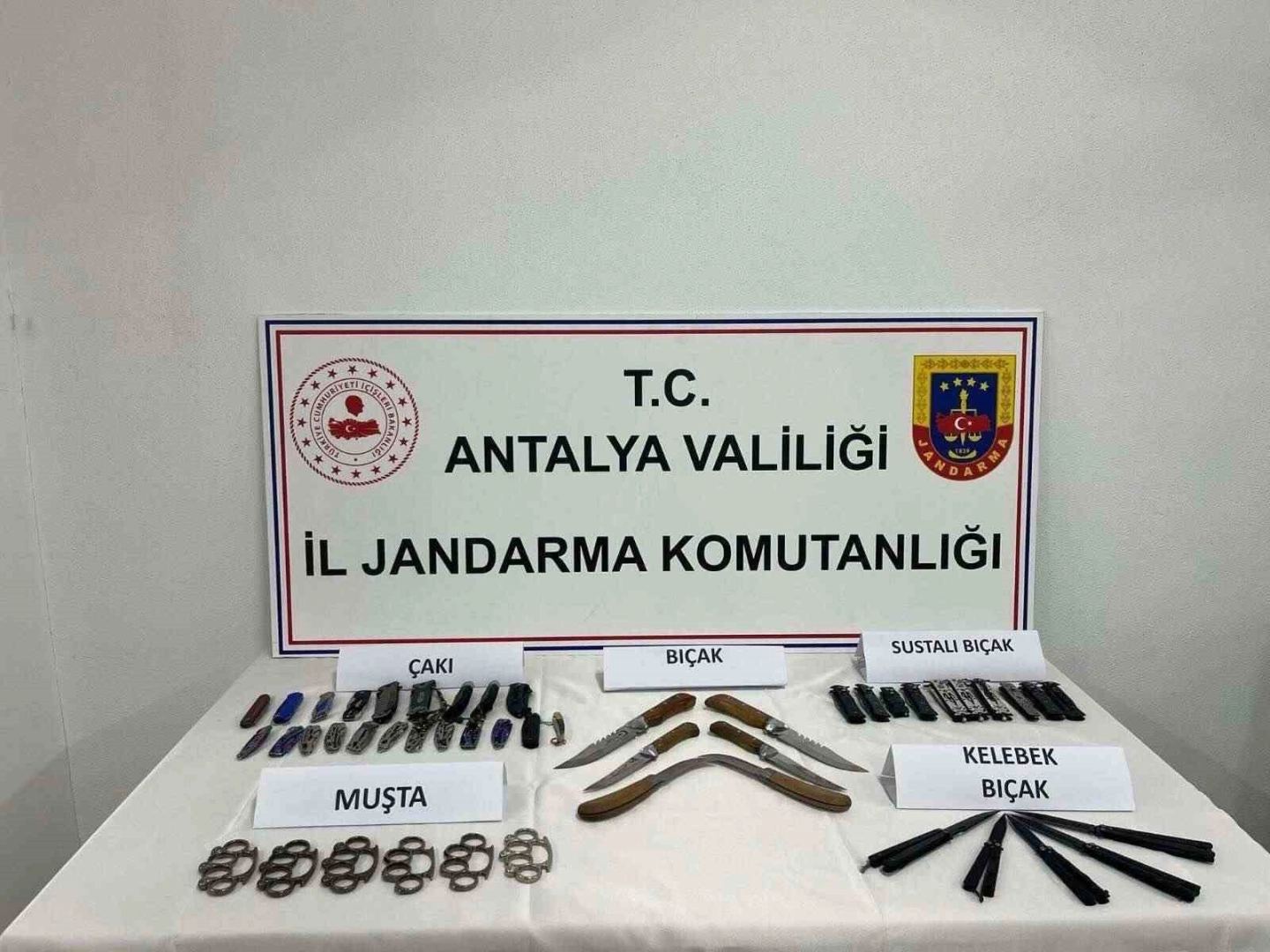 Antalya İl Jandarma Komutanlığı ekiplerince yürütülen çalışmalar kapsamında, Gazipaşa ilçesinde okul çevrelerinde kesici ve delici alet satışı yapıldığı bilgisi üzerine harekete geçildi. Gazipaşa Cumhuriyet Başsavcılığı talimatları doğrultusunda bölgede önleyici devriye faaliyetleri artırıldı. Yapılan çalışmalar neticesinde F.D. isimli şüpheli şahıs yakalanırken, satışa sunduğu malzemeler üzerinde yapılan kontrolde çok sayıda suç unsuru ele geçirildi. Ekipler tarafından yapılan aramada 5 adet kelebek bıçak, 9 adet sustalı bıçak, 6 adet muşta, 21 adet çakı, 6 adet bıçak, ayrıca 27 adet saat, 19 adet gözlük ve 9 adet tıraş makinesi ele geçirildi. Söz konusu malzemelere el konuldu. Olayla ilgili olarak adli tahkikat başlatıldı.