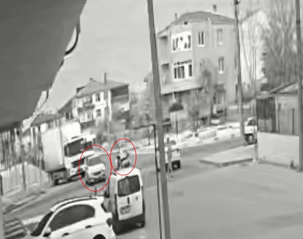 Tekirdağ Çorlu’da otomobille çarpışması sonucu motosikletten fırlayan sürücünün yere savrularak yaralandığı kaza kameraya yansıdı