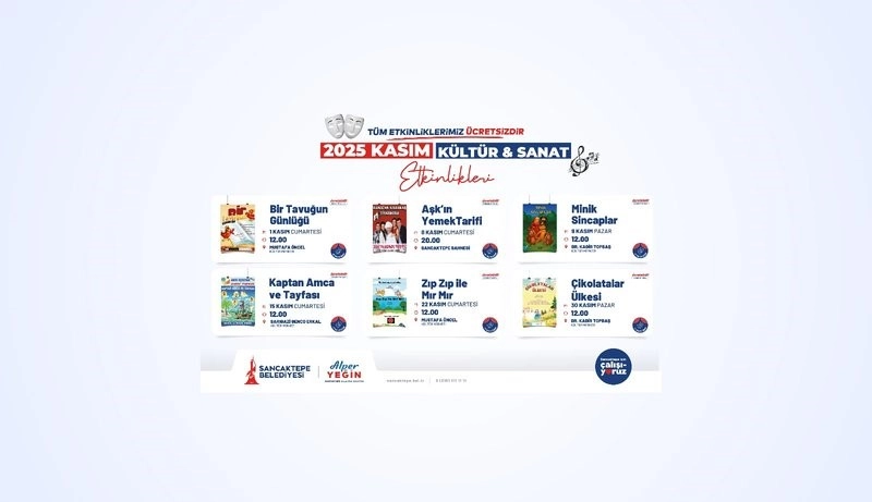 Etkinlikler kapsamında; "Aşk’ın Yemek Tarifi" - 8 Kasım Cumartesi, 20.00 / Emek Kültür Merkezi, "Kaptan Amca ve Tayfası" - 9 Kasım Pazar, 12.00 / Mevlana Kültür Merkezi, "Minik Sincaplar" - 16 Kasım Pazar, 12.00 / Yenidoğan Kültür Merkezi, "Zıp Zıp ile Mır Mır" - 22 Kasım Cumartesi, 12.00 / Yenidoğan Kültür Merkezi, "Çikolatalar Ülkesi" - 23 Kasım Pazar, 12.00 / Samandıra Kültür Merkezi’nde ücretsiz olarak sahnelenecek.