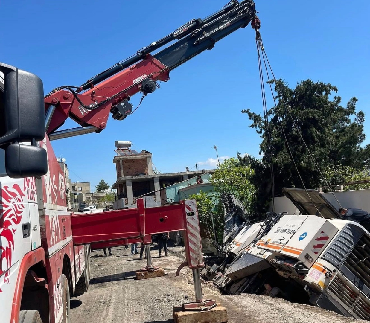 Edinilen bilgilere göre, Barış Mahallesi’nde devam eden asfalt kazıma çalışmaları esnasında iş makinesi, zeminde meydana gelen kayma sonucu yana devrildi. Kazada can kaybı ya da yaralanma yaşanmazken, iş makinesinde maddi hasar meydana geldi.