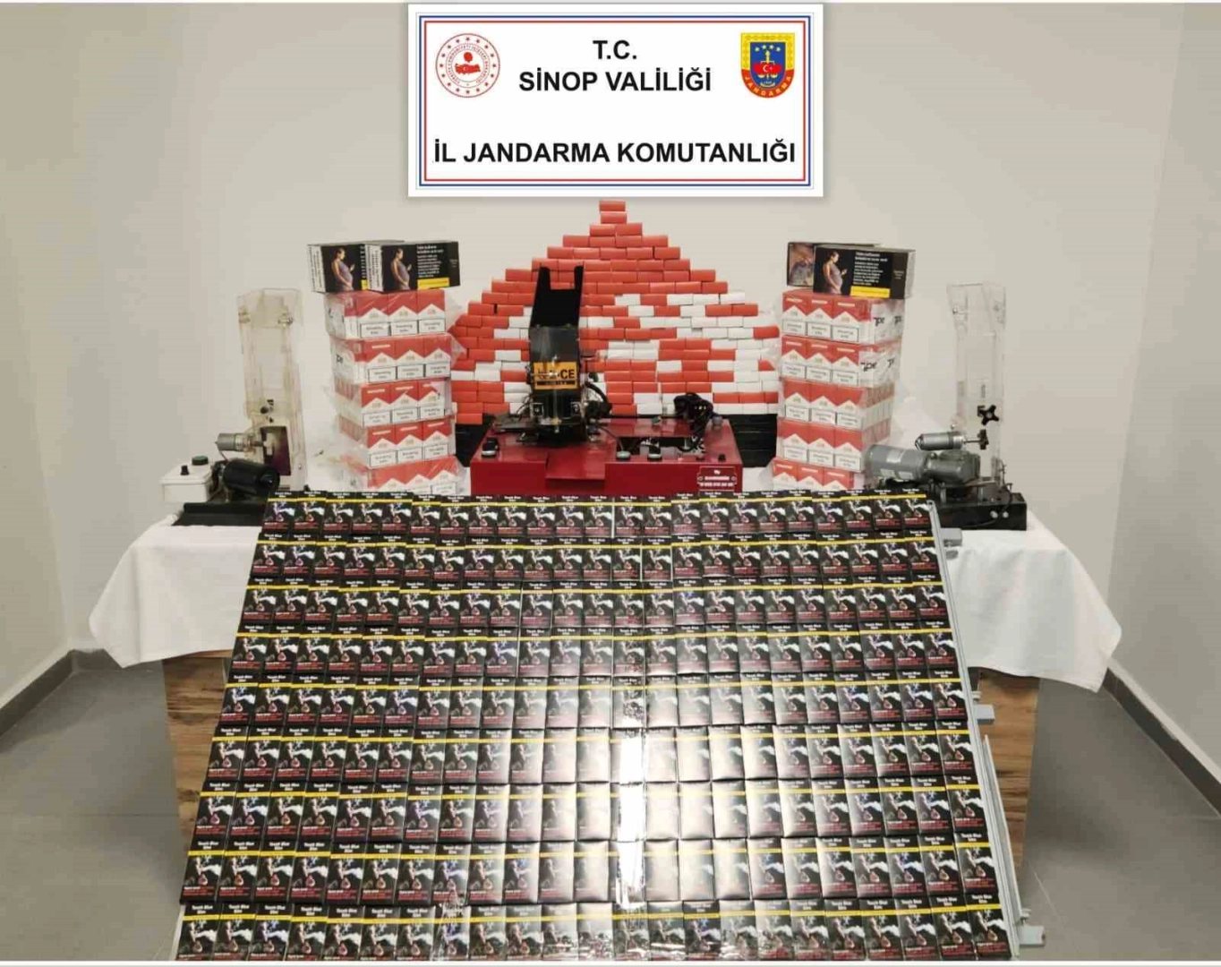 Sinop’un Gerze ilçesinde jandarma ekipleri tarafından düzenlenen operasyonda, çok sayıda kaçak makaron ve sigara üretim malzemesi ele geçirildi.