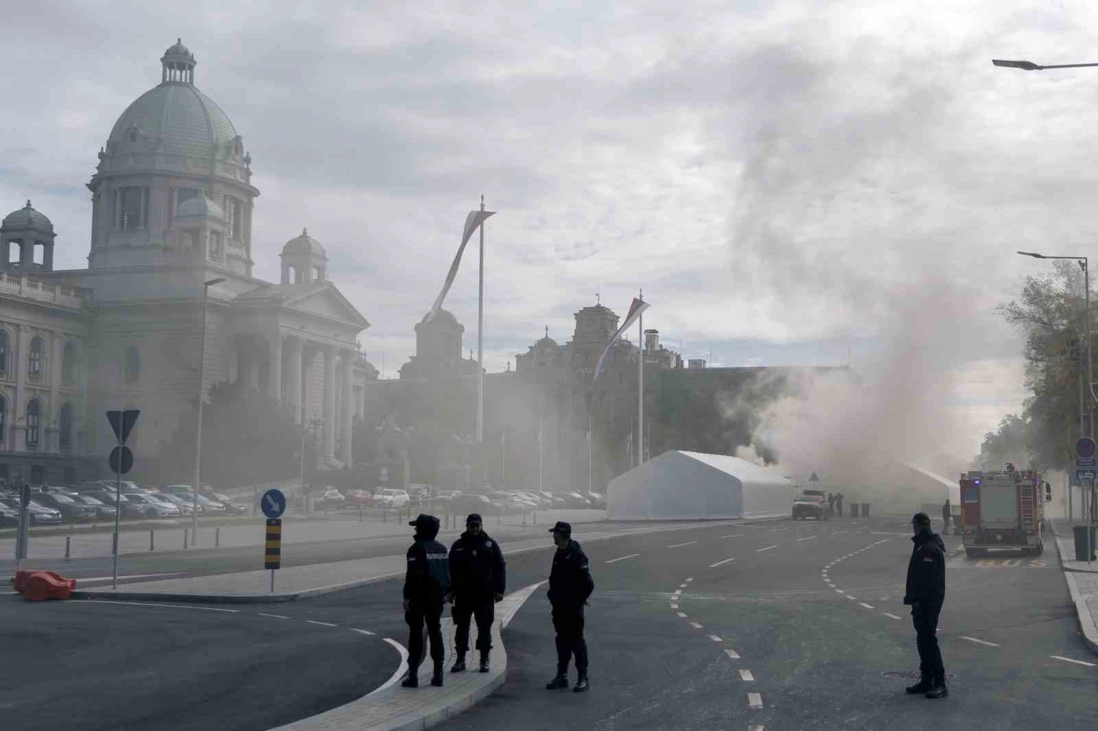 Sırbistan’ın başkenti Belgrad’da parlamento binası önünde Sırbistan hükümeti ve Cumhurbaşkanı Aleksandar Vucic yanlısı göstericilerin çadır kurduğu alanda yerel saatle 10.00 sıralarında silahlı saldırı gerçekleştirildi. Yetkililere göre saldırgan, çevreye birkaç el ateş edip 1 kişiyi ağır yaraladıktan sonra çadırda yangın çıkardı. Sırbistan medyası, saldırganın 57 yaşındaki bir adamı bacağından vurduktan sonra çadırdaki bir gaz tüpüne ateş ettiğini aktardı. Parlamento ve Cumhurbaşkanı Vucic’in Ofisi arasında yer alan parktaki çadırda gerçekleştirilen saldırının ardından polis, saldırganı gözaltına aldı. Çadırda çıkan yangın kısa sürede kontrol altına alınırken, gaz tüpü patlaması nedeniyle bölgeye ambulans sevk edildi.