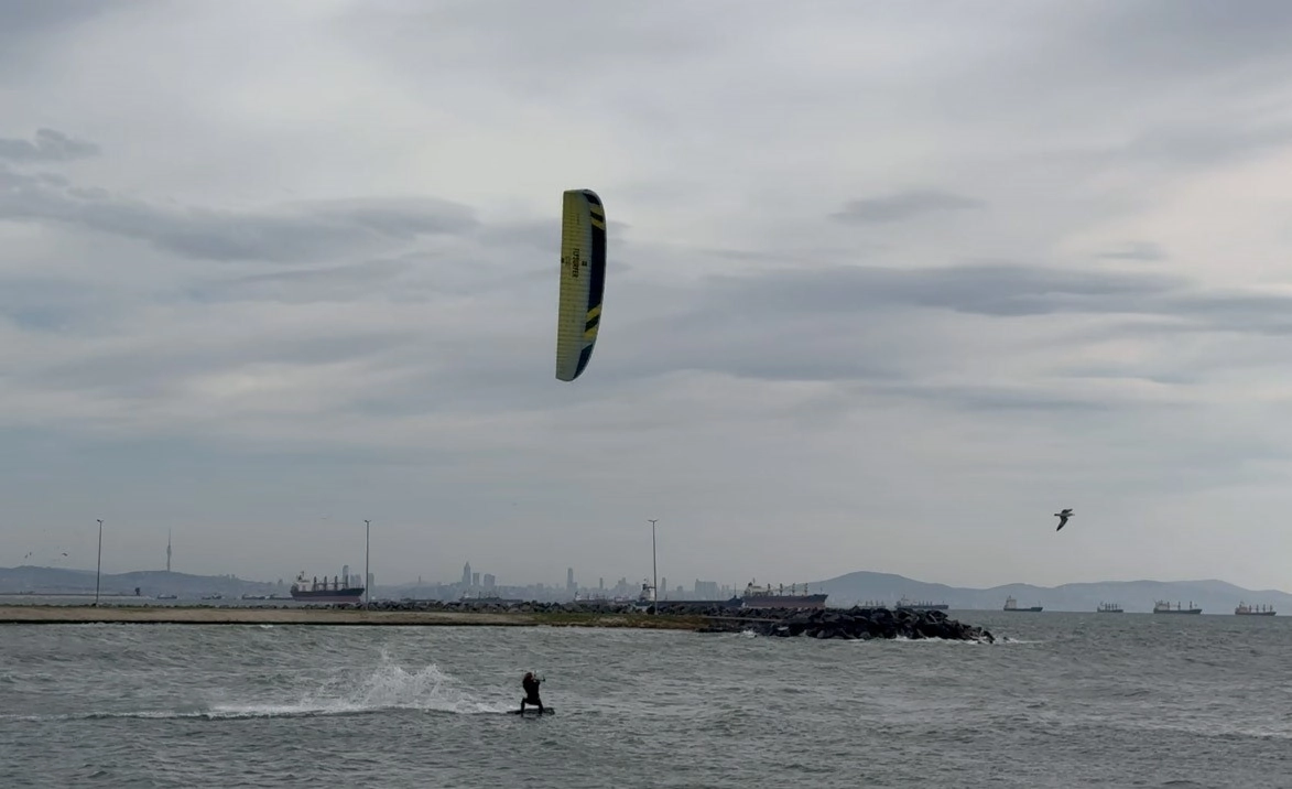 İstanbul’da etkisini gösteren lodosu sörf tutkunları fırsata çevirdi. Bakırköy Yeşilköy sahilinde adrenalin tutkunu sporcular, bir araya gelerek dev dalgalara meydan okudu. Ayaklarında sörf tahtaları, ellerinde uçurtma ipleriyle sporcular adeta denizde dans edip kendilerini metrelerce yukarı fırlattı. Denizde sörf keyfi kameralara yansıdı.