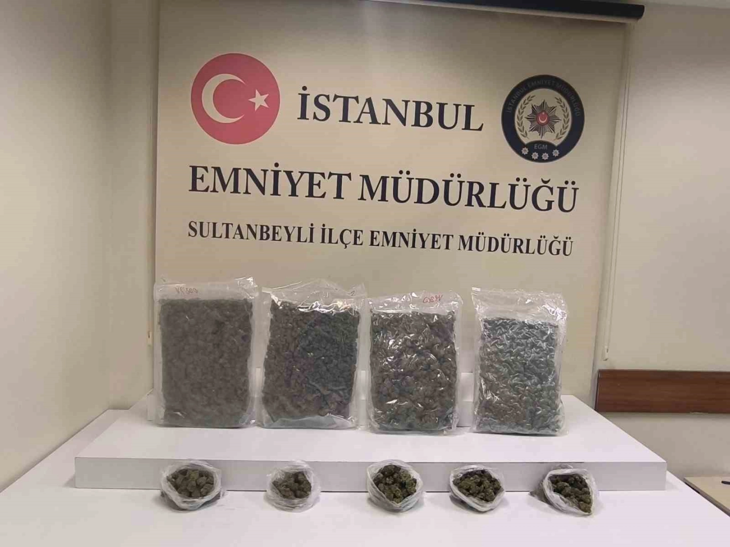 İstanbul Sultanbeyli İlçe Emniyet Müdürlüğü Asayiş Büro ekipleri, ilçedeki genel asayiş uygulaması kapsamında bazı şüphelileri takibe aldı. Geçtiğimiz Cuma günü Fatih Mahallesinde gerçekleştirilen gündüz denetimleri esnasında şüphe üzerine bir araç durdurulmak istendi. Polisin ‘dur’ ihtarına uymayan şüpheli, araçla birlikte kaçmaya başladı. Bunun üzerine polis ile şüpheli arasında kovalamaca başladı. Dron ile takip edilen şüpheli, kısa sürede yakalanarak gözaltına alındı. Kaçmaya kalkışan sürücünün 49 yaşındaki H.B. olduğu belirlendi. Takip edilerek durdurulan otomobil polis tarafından arandı. Aramada bir miktar uyuşturucu madde ele geçirildi. Çalışmalarını genişleten polis ekipleri, devamında şüpheli H.B.’nin aynı mahallede bulunan evine yönelik operasyon gerçekleştirildi. Baskında, 5 kilo 24 gram marihuana denen uyuşturucu madde ele geçirildi. Gözaltına alınıp sorguya çekilen H.B., ifade işlemlerinin tamamlanmasının ardından Cumartesi günü "Uyuşturucu veya Uyarıcı Madde İmal ve Ticareti" suçundan sevk edildiği adli makamlarca tutuklandı.