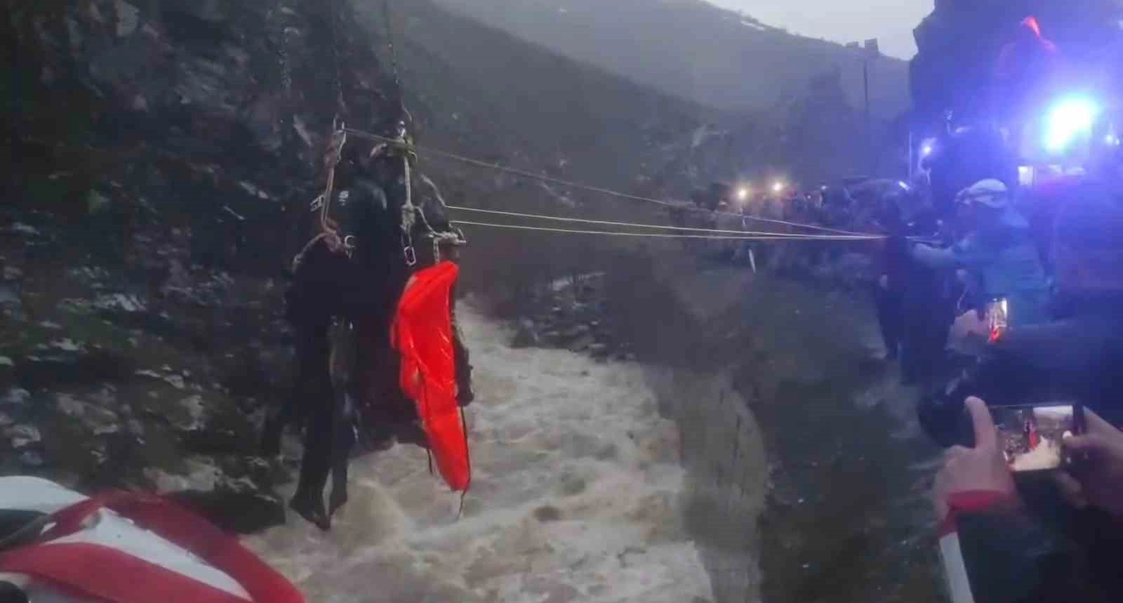 Hazo Deresi mevkiinde yaşanan kazada beton mikseri dereye uçmuştu. Vinç yardımıyla dereden çıkarılan araçta yapılan incelemede sürücüye ulaşılamamış ve sürücünün bulunduğu taraftaki camını kırık olduğu tespit edilmişti. Sel sularına kapılarak kaybolduğu değerlendirilen beton mikseri sürücüsü E.Ç.’nin aracın yakıt deposu kısmına sıkıştığı belirlendi. Ekipler tarafından bulunduğu yerden çıkarılan sürücünün hayatını kaybettiği tespit edildi. AFAD, jandarma ve gönüllü ekipler tarafından araçtan çıkarılan sürücünün cansız bedeni sağlık ekiplerine teslim edildi.