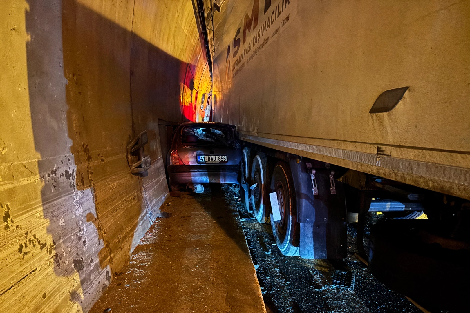 Kaza, saat 16.15 sıralarında TEM Otoyolu'nun İzmit ilçesi geçişi İstanbul istikametinde meydana geldi. M.K. idaresindeki 27 HG 806 plakalı tır aynı yönde giden M.E.Y. hakimiyetindeki 41 BAU 856 plakalı otomobili iddiaya göre tünel duvarına sıkıştırdı. Otomobil tünel duvarı ile tırın arasında kalan otomobil hurdaya dönerken, kazada yaralanan olmadı. Çevredeki vatandaşların ihbarı üzerine olay yerine sağlık ekipleri, itfaiye ve jandarma sevk edildi. Otoyolda ulaşım aksadı Kaza nedeniyle bölgede trafik bir süre aksarken, araçların yoldan kaldırılması ve ekiplerin çalışmasının ardından ulaşım normale döndü. Jandarma kazayla ilgili inceleme başlattı.