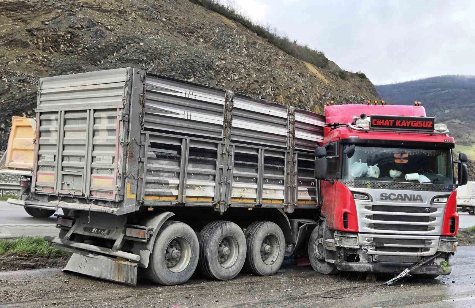 Samsun’un Kavak ilçesinde yağışın etkisiyle kayganlaşan yolda kontrolden çıkan tırın makaslaması sonucu meydana gelen kazada sürücü yaralandı.