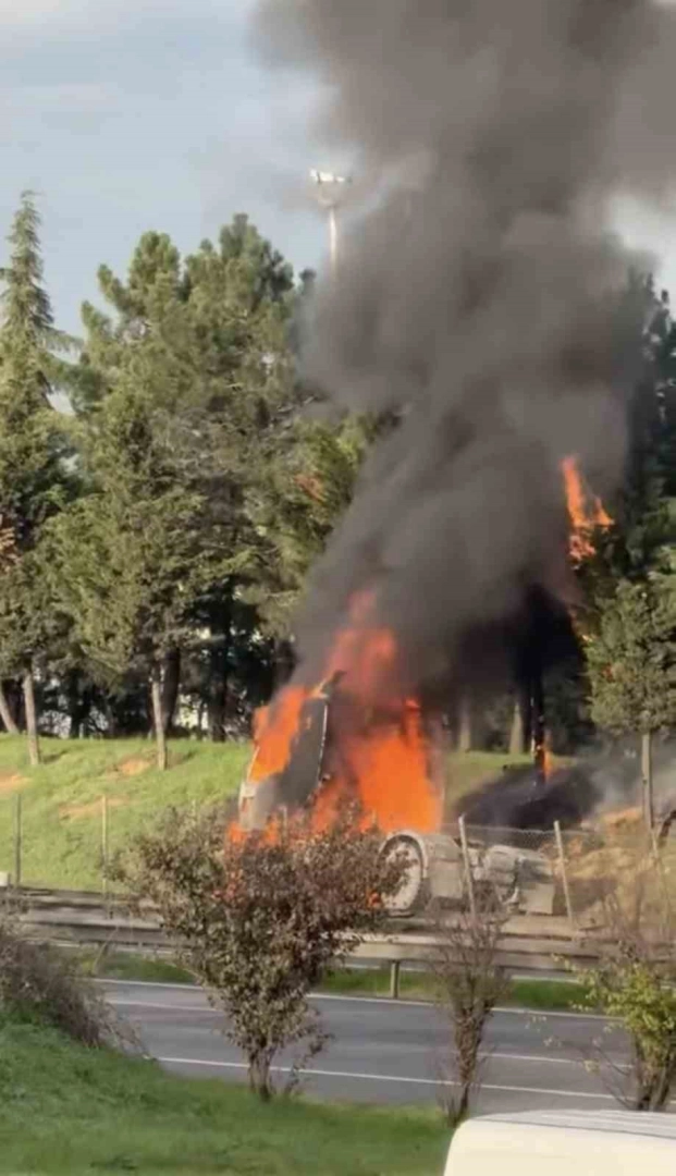 Yangın, saat 16.00 sıralarında Anadolu Otoyolu Orhanlı Gişeler İstanbul istikametinde meydana geldi. F.A. (25) idaresindeki 34 KEU 739 plakalı dorsesiz tırda bilinmeyen bir nedenle çıkan yangın kısa sürede büyüdü. Çevredekilerin ihbarı üzerine olay yerine itfaiye, sağlık ve polis ekipleri sevk edildi. Yangın ekiplerin müdahalesiyle söndürüldü. Yangın nedeniyle trafik kontrollü olarak sağlandı. Tırın alev alev yandığı anlar cep telefonu kamerası ile kaydedildi.