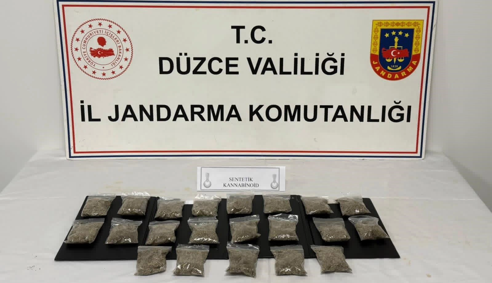 Düzce Cumhuriyet Başsavcılığı koordinesinde İl Jandadma Komutanlığı Narkotik Suçlarla Mücadele Şube Müdürlüğü ekiplerince yürütülen çalışmalarda merkez ilçede H.T isimli şahsın il dışından getirdiği uyuşturucu maddelerin ticaretini yaptığı tespit edildi. Jandarma ekiplerinin yaptığı baskında H.T isimli şahıs uyuşturucu maddeleri satışa hazırlarken yakalandı. Şahsın evinde yapılan aramada 21 adet 50’şer gramlık paketler halinde, toplam 1 kilo 50 gram uyuşturucu madde emdirilmiş sentetik kannabinoid ele geçirildi. H.T isimii şahıs göz altına alınırken hakkında adli işlem başlatıldı.