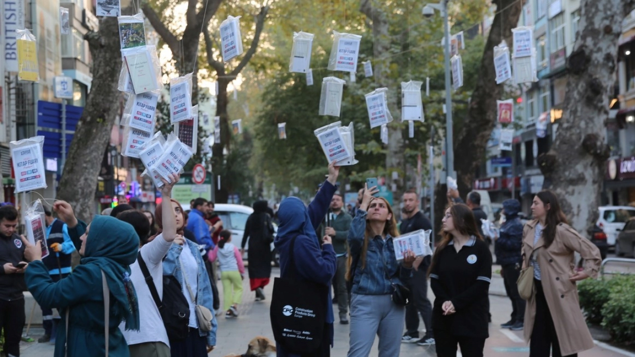 Kocaeli Kitap Fuarı'nda tarihi çınar ağaçlarına asılan 5 bin kitap, vatandaşlar tarafından 5 dakikada toplandı. Katılımdan çok memnun olduğunu söyleyen Kocaeli Büyükşehir Belediye Başkanı Tahir Büyükakın, Geçen yıl yapılan fuarda 900 bini aşan ziyaretçi sayısına ulaştık. Bu seneki hedefimiz 1 milyon dedi.