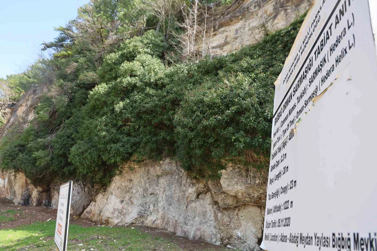 Meydan Yaylası Bığbığı mevkiisinde yer alan sarmaşık, 20 metre boyu, 2,3 metre çapı ve 23 metrelik taç genişliğiyle dikkat çekiyor. Özel koruma altında bulunan ve Türkiye’nin önemli tabiat anıtları arasında yer alan dev sarmaşık, zamana meydan okuyan görüntüsüyle ziyaretçilerini Adana’da baharın gelişi ile yeniden karşılamaya başladı.