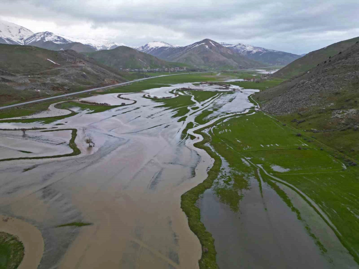 Bitlis’in Tatvan ilçesinde yer alan doğa harikası Güzeldere Menderesleri, uzun süren sağanak yağışların ardından sular altında kalarak adeta doğal bir göle dönüştü.