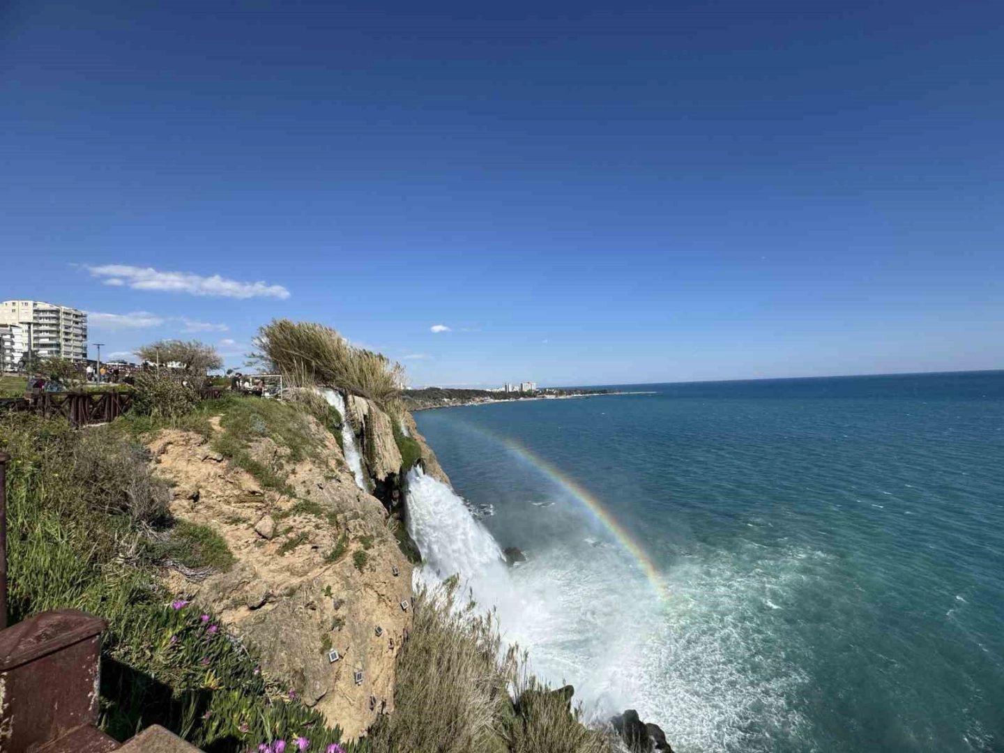 Antalya’nın Muratpaşa ilçesinde Düden Şelalesi’nde oluşan gökkuşağı, ziyaretçilere unutulmaz anlar yaşattı.
