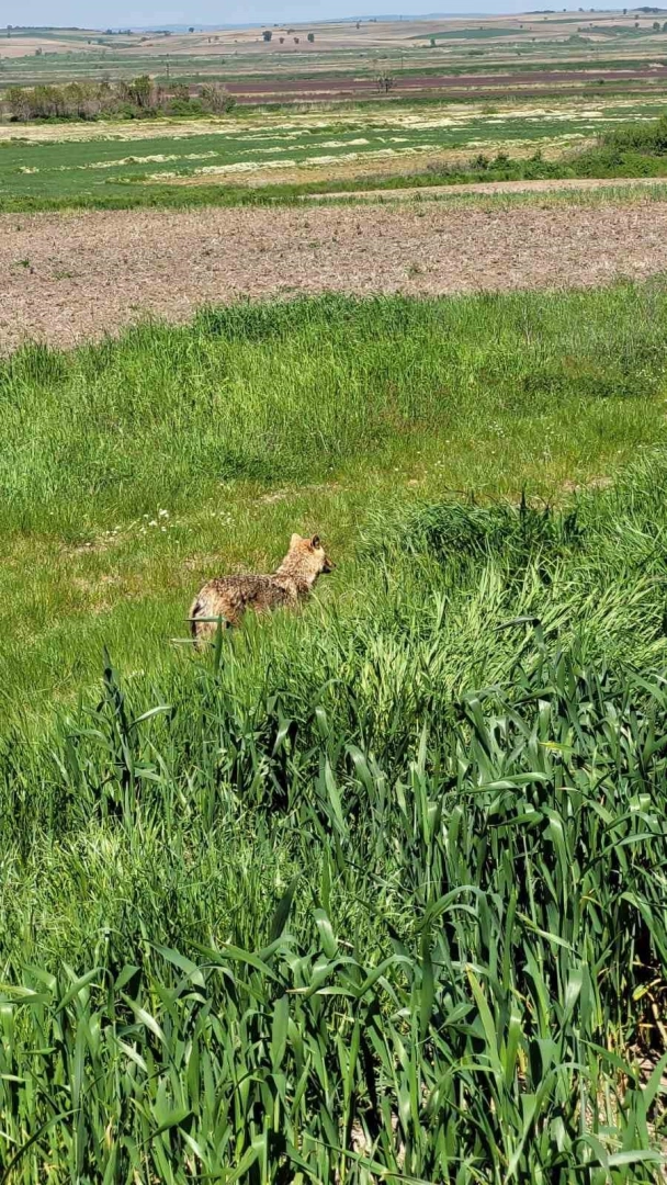 Edirne’nin İpsala ilçesine bağlı Sultanköy’de tarlasını süren bir çiftçi, gündüz saatlerinde karşısına çıkan çakal nedeniyle kısa süreli şaşkınlık ve tedirginlik yaşadı.