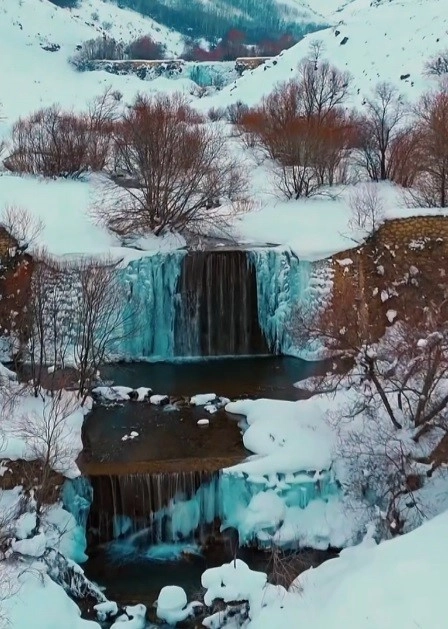 Ağır kış şartlarının yaşandığı ilçede nisan ayının ortalarına gelinmesiyle birlikte küçük şelalelerde buz sarkıtları varlığını korurken, çözülmeye başlayan dereler dikkat çekti. Fotoğraf sanatçısı Emrah Karakoç tarafından drone ile kaydedilen görüntüler görsel şölen oluşturdu.