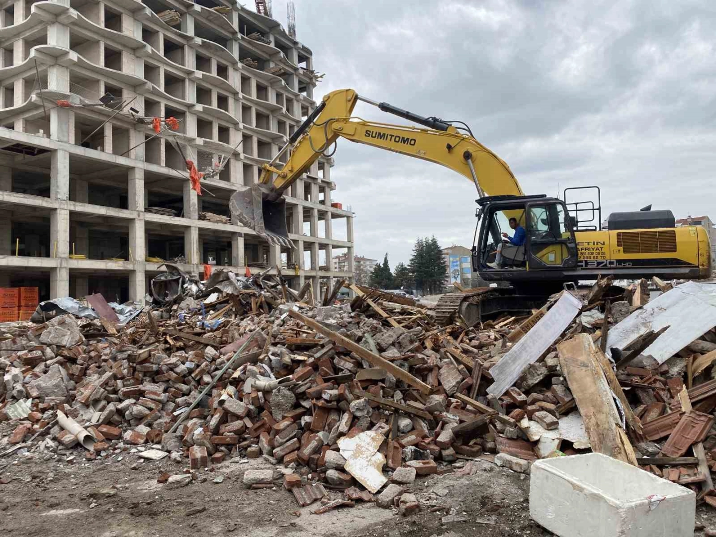 Eskişehir’de önceki gece kendiliğinden yıkılan metruk iş yerinin yanındaki tek katlı iş yeri de belediye ekipleri tarafından yıkıldı.