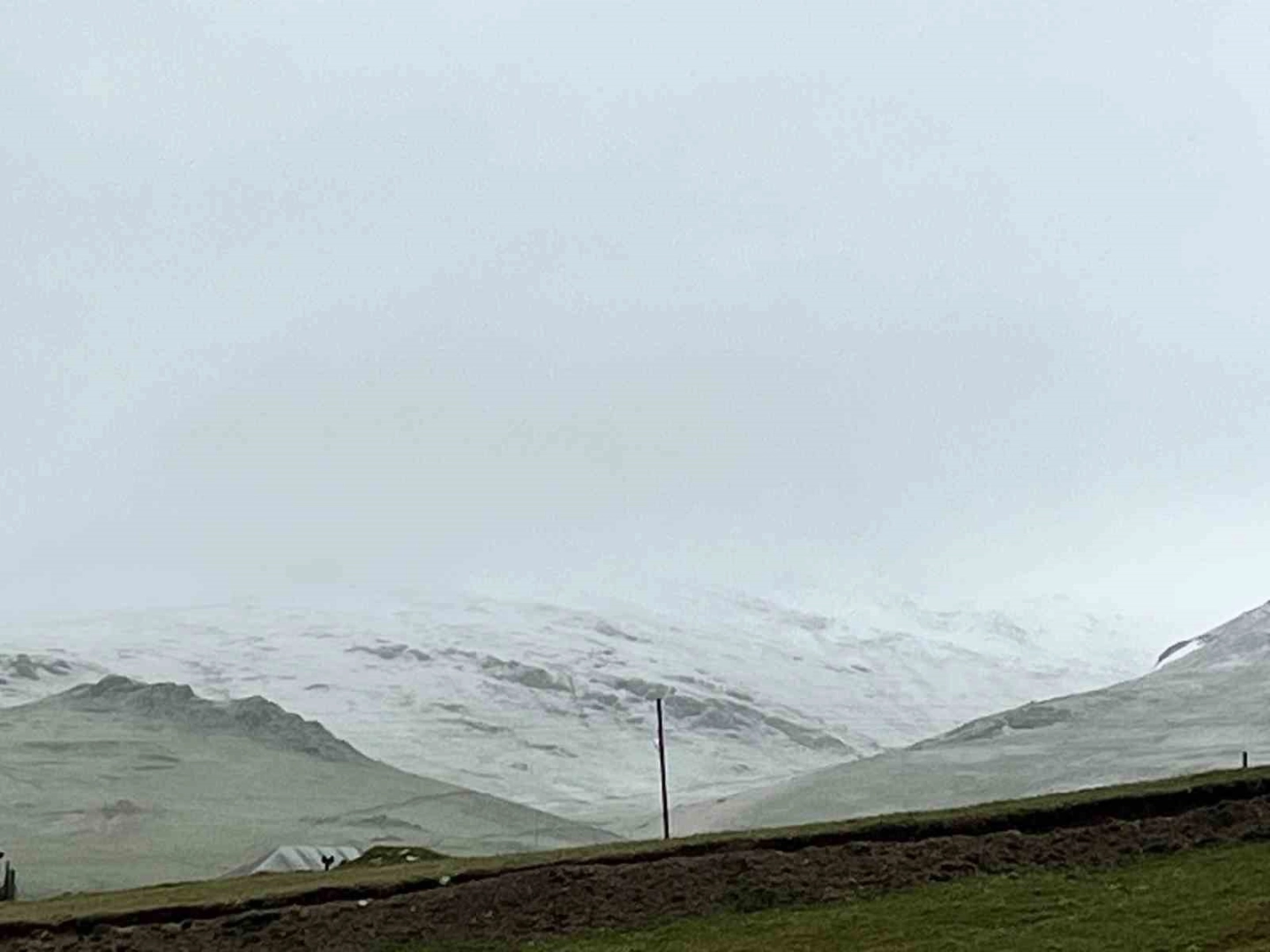 Hava sıcaklığının 4 dereceye kadar düştüğü bölgede vatandaşlar Haziran ayında kar yağışını şaşkınlıkla karşılarken cep telefonlarıyla kaydettikleri görüntüleri sosyal medyada paylaştı.