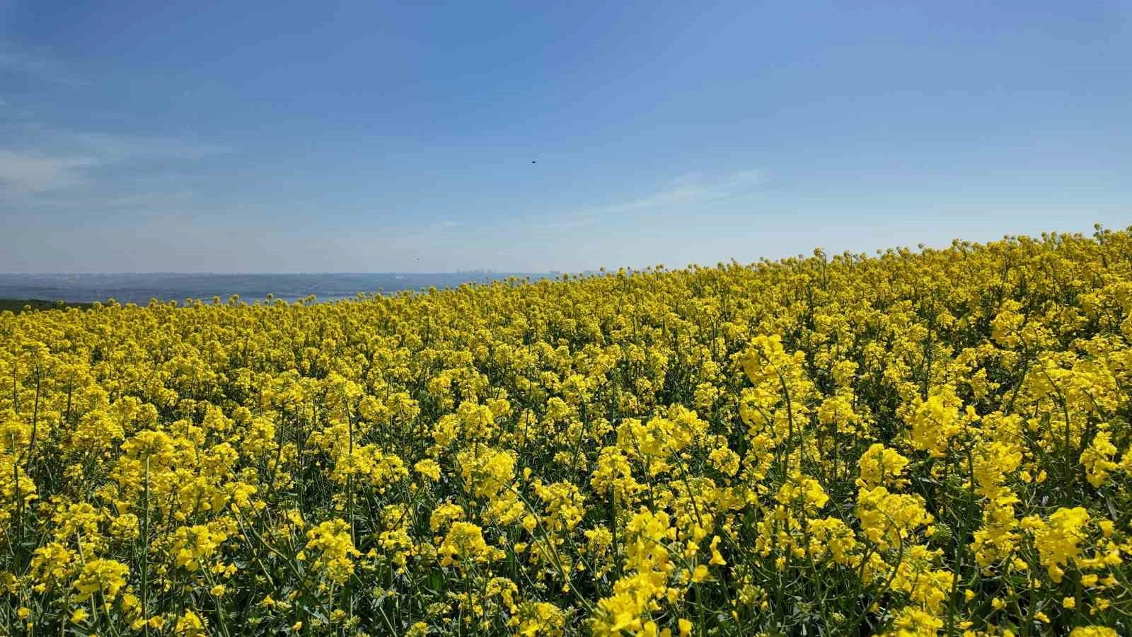 İlkbaharda açan kanola çiçekleri görsel şölen oluşturdu.