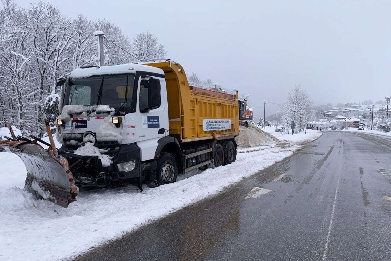 Karayolları ekiplerine destek veren Büyükşehir Belediyesi iş makineleri, güzergah boyunca ring atarak yolun açık kalmasını sağlıyor. Büyükşehir Belediyesi Yol Bakım ve Onarım Dairesi Başkanlığı ekipleri, Karayolları Genel Müdürlüğü sorumluluğunda bulunan İzmit-Kandıra yolunda kar küreme ve tuzlama çalışması gerçekleştiriyor. İş makineleriyle güzergahta sürekli ring atan ekipler, yolun her iki istikametinde de ulaşımın kapanmaması için Karayolları ekipleriyle koordineli çalışıyor. Öte yandan kent genelindeki kırsal mahalle ve köy yollarında da karla mücadele çalışmalarının sürdüğü bildirildi. Yetkililer, ulaşıma açık olan Kandıra yolunu kullanacak sürücüleri buzlanma riskine karşı uyararak, kış lastiği ve zincir kullanımı konusunda dikkatli olmalarını istedi.