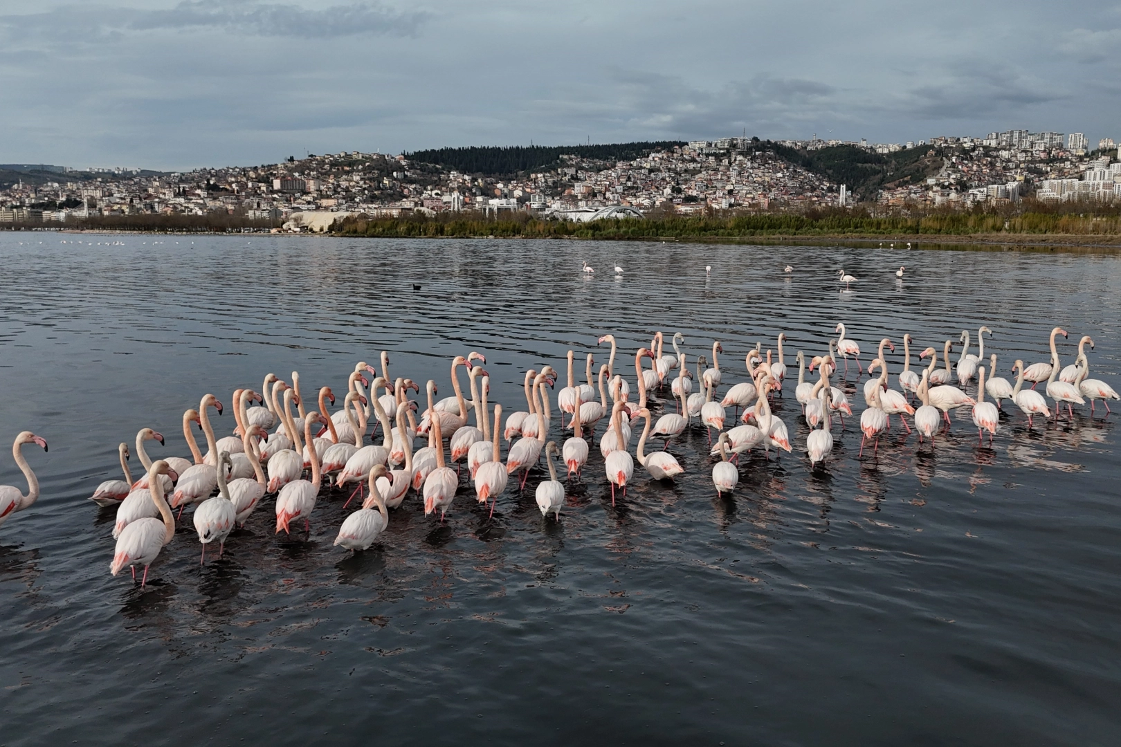 Kış mevsimine rağmen İzmit Körfezi'ni mesken tutan flamingolar, sulak alanlardaki besin bolluğu ve uygun iklim şartları sayesinde körfezde konaklıyor. Özellikle gün doğumu ve gün batımında su yüzeyine yansıyan pembe renkleriyle eşsiz manzaralar oluşturan allı turnalar, doğa fotoğrafçıları ve kuş gözlemcilerinin de ilgi odağı oluyor. "İzmit Körfezi, göç eden kuşların en önemli uğrak alanlarından biri" Kocaeli Büyükşehir Belediyesi Ormanya Biyoloğu Dr. Recep Bakır, İzmit Körfezi'nin bulunduğu konum itibarıyla göçmen kuşlar için hayati öneme sahip olduğunu belirtti. Avrupa ve Afrika ekseninde göç eden kuşların beslenmek, durup dinlenmek ve zaman geçirmek için bu tür alanlara ihtiyaç duyduğunu vurgulayan Bakır, "Türkiye, önemli göç yolları üzerinde bulunan bir mevkide. Özellikle boğaz geçişlerine yakın olduğumuz için kuşlar burada hem beslenip hem dinlenmektedirler. O yüzden İzmit Körfezi, göç eden kuşların en önemli uğrak alanlarından biridir" dedi. Nesli tükenme tehlikesi altındaki türler körfezi seçti Bölgede bugüne kadar 170'in üzerinde kuş türünün tanımlandığına dikkati çeken Bakır, bu türler arasında dünya çapında koruma altında olan kuşların da bulunduğunu ifade ederek şunları kaydetti: "Bu 170 türün içinde bazıları çok önemli. Örneğin nesli tükenme tehlikesi altında olan 'dik kuyruk' kuş türümüz var ve bu tür tüm dünya için çok önemli. Üredikten sonra burayı beslenme ve dinlenme alanı olarak kullanmakta. Diğer bir türümüz de 'küçük karabatak'. Bu türümüz de yine aynı şekilde üredikten sonra İzmit Körfezi'ni beslenme ve dinlenme alanı olarak seçiyor." Dip çamuru temizlendi, flamingo sayısı ikiye katlandı Flamingoların Tuz Gölü, Gediz Deltası veya Akdeniz bölgesinde üredikten sonra kışlamayı İzmit Körfezi'nde geçirdiğini aktaran Dr. Bakır, popülasyondaki sevindirici artışa ve Kocaeli Büyükşehir Belediyesinin çevre yatırımlarına işaret etti. Körfezdeki kuş artışını yakından takip ettiklerini belirten Bakır, sözlerini şöyle tamamladı: "Sayıları her geçen gün artmakta. Bunun en önemli sebeplerinden biri de 2023 yılında Kocaeli Büyükşehir Belediyesi tarafından başlatılan dip çamuru temizliğidir. Bu çamur tamamen temizlendikten sonra daha da fazla kuş türünü ağırlayacağımızı düşünüyoruz. Rakamlara bakarsak; 2023 yılındaki flamingo sayısı 260 civarındaydı. Temizlik çalışmalarının etkisiyle bu sayı 2024 yılında 500'e yaklaştı. 2025 yılında da 450-500 civarında devam etti. Burası geçiş bölgesi, kara ile suyun birleştiği nokta. Biriken balçık kaldırıldığı zaman iki bölgeyi birbirine daha net kaynaştırmış olacağız. Bu da ekosistemdeki çeşitliliği çok daha fazla artırmış olacak."