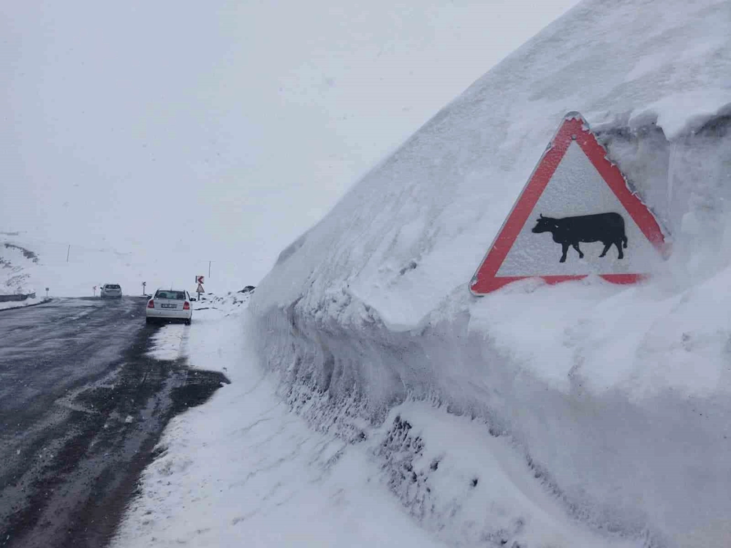 Nisan ayının sonlarına gelinmesine rağmen aralıklarla etkisini sürdüren kar yağışı, hayatı olumsuz etkilemeye devam ediyor. Özellikle Ardahan-Posof kara yolunun 2550 rakımlı ılgar dağı geçidinde kar kalınlığı dikkat çekici seviyelere ulaştı. Bazı bölgelerde biriken kar, yol kenarındaki trafik tabelalarının boyunu aşarak adeta doğa ile mücadeleyi gözler önüne serdi.