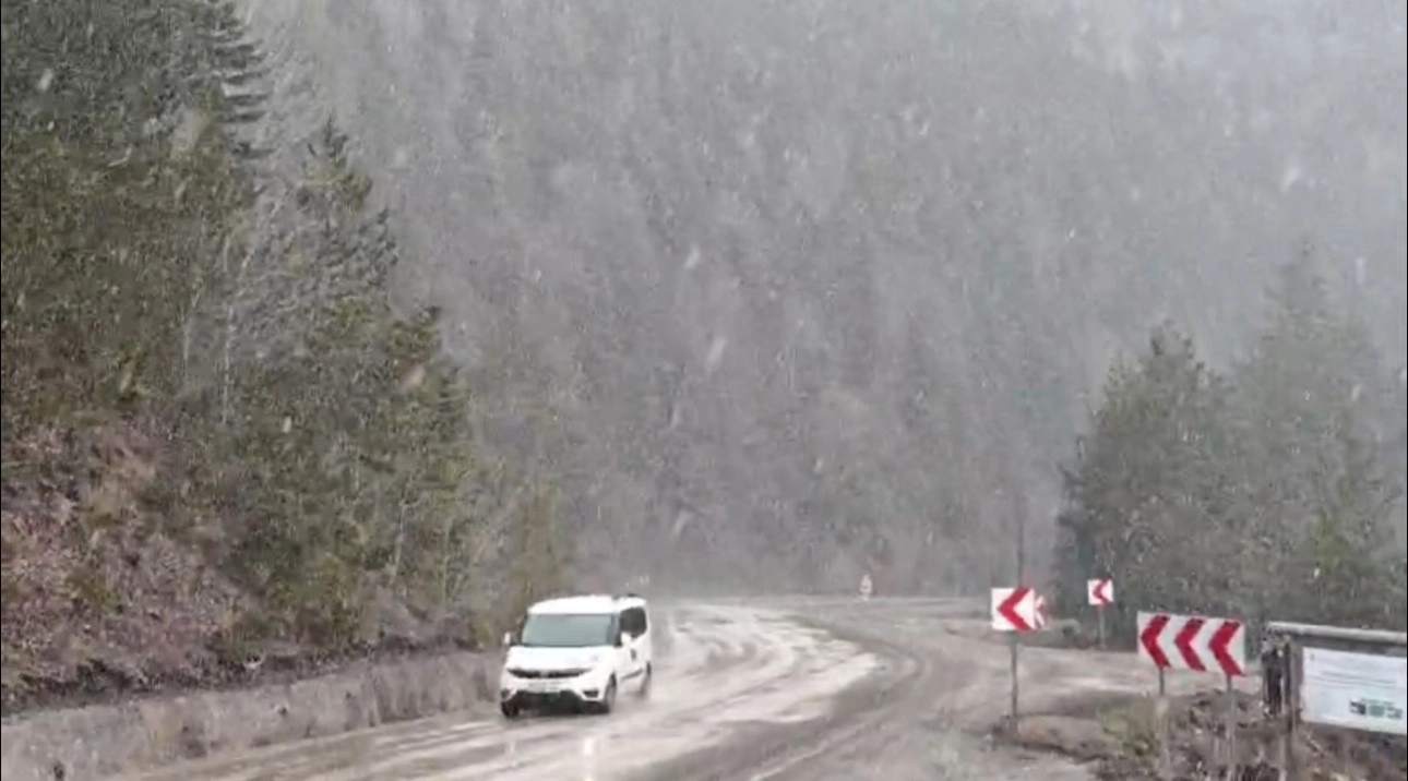 Hava sıcaklıklarının düştüğü Karabük’ün yüksek kesimlerinde kar yağışı yeniden başladı. Karabük-Bartın kara yolunun 1030 rakımlı Ahmetusta mevkisinde başlayan kar yağışı, bölgede kısa sürede etkisini gösterdi. Güzergahı kullanan vatandaşlar, o anları cep telefonu kamerasıyla kayda aldı.